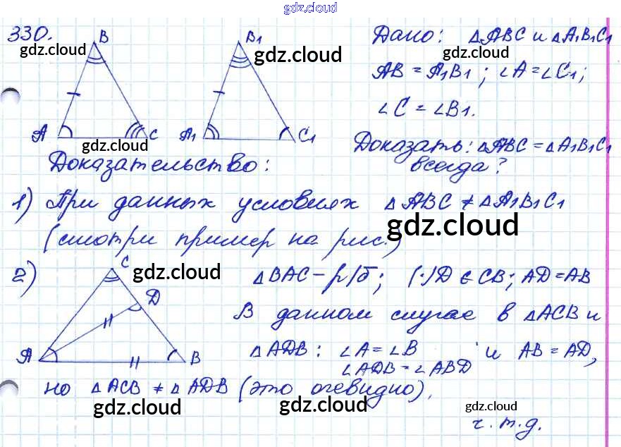 Ответ на задание 330 Учебник Геометрия за 7, 8, 9 (седьмой, восьмой, девятый) класс Атанасян, Бутузов, Кадомцев 2010