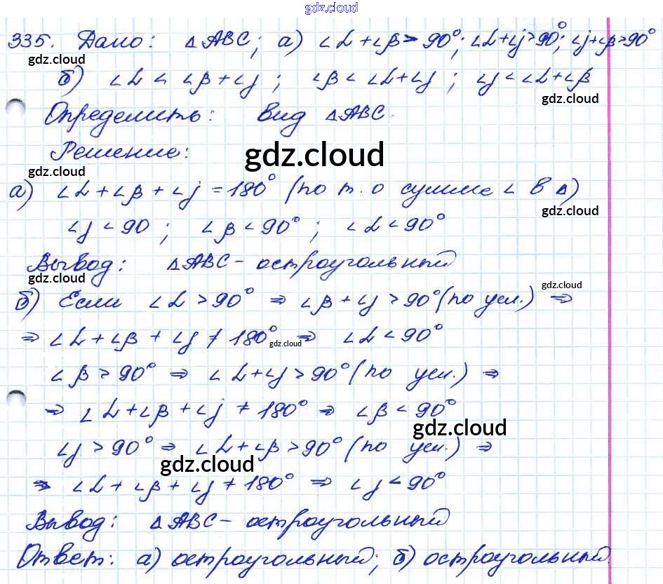 Ответ на задание 335 Учебник Геометрия за 7, 8, 9 (седьмой, восьмой, девятый) класс Атанасян, Бутузов, Кадомцев 2010
