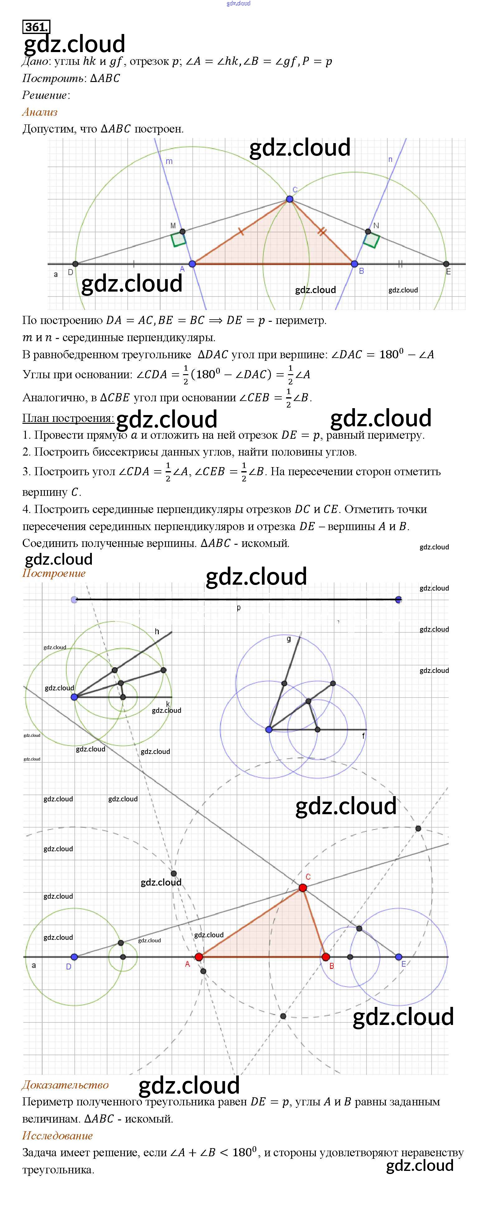 Ответ на задание 361 Учебник Геометрия за 7, 8, 9 (седьмой, восьмой, девятый) класс Атанасян, Бутузов, Кадомцев 2010