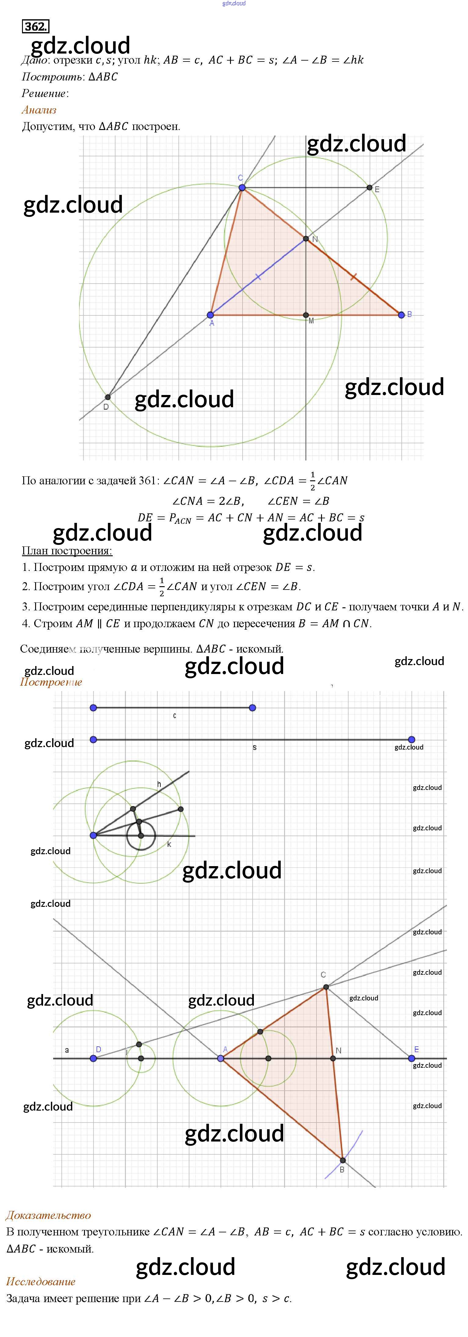 Ответ на задание 362 Учебник Геометрия за 7, 8, 9 (седьмой, восьмой, девятый) класс Атанасян, Бутузов, Кадомцев 2010