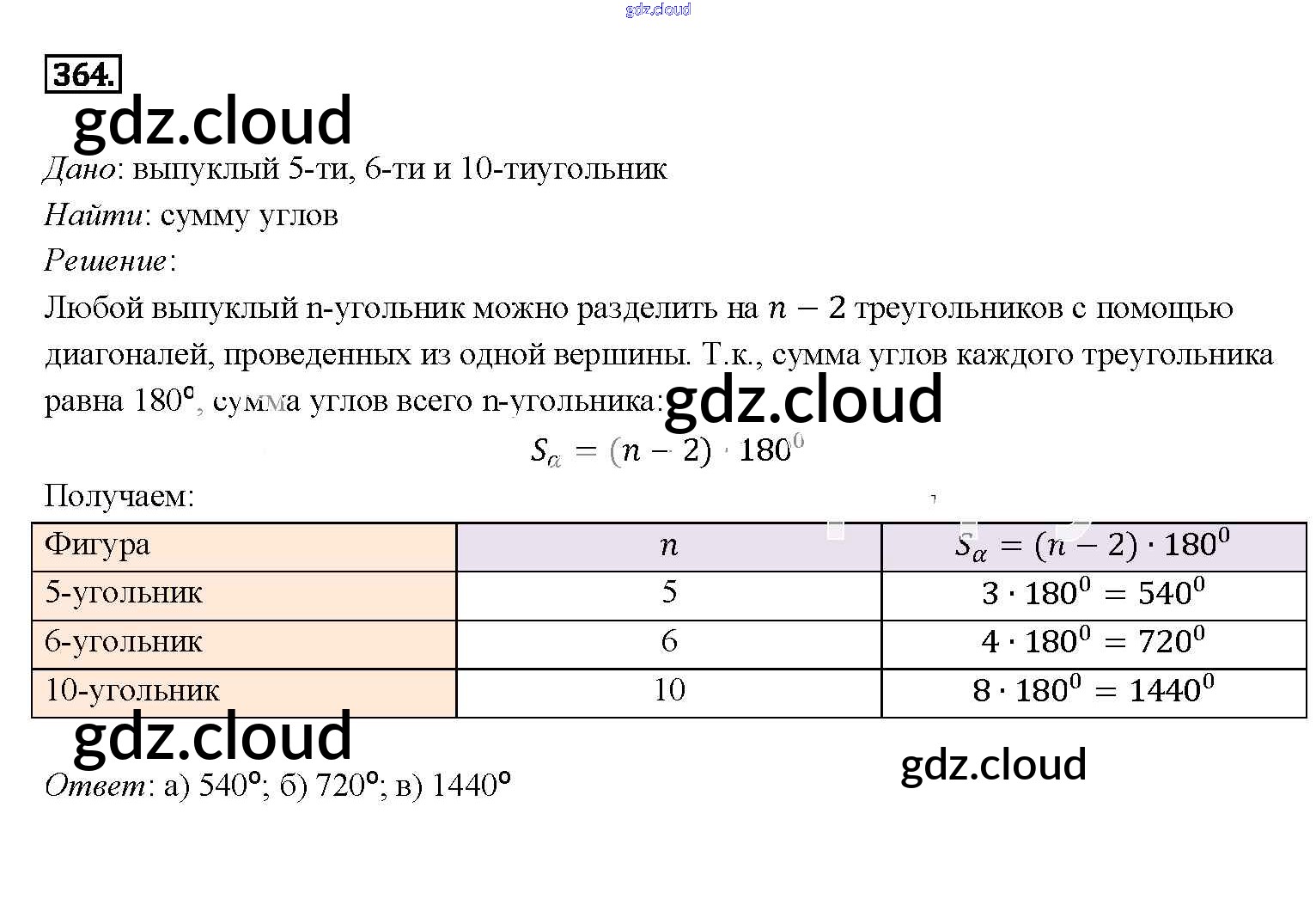 Ответ на задание 364 Учебник Геометрия за 7, 8, 9 (седьмой, восьмой, девятый) класс Атанасян, Бутузов, Кадомцев 2010