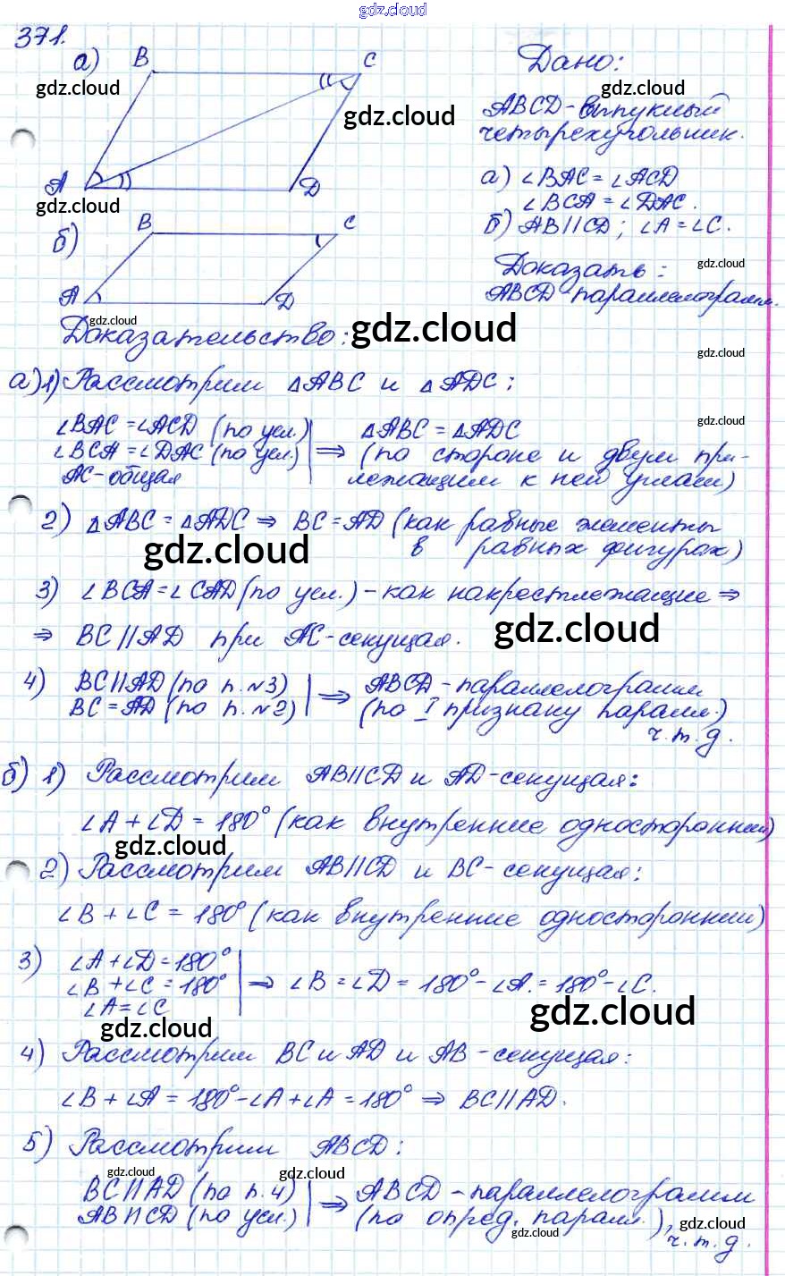 Ответ на задание 371 Учебник Геометрия за 7, 8, 9 (седьмой, восьмой, девятый) класс Атанасян, Бутузов, Кадомцев 2010