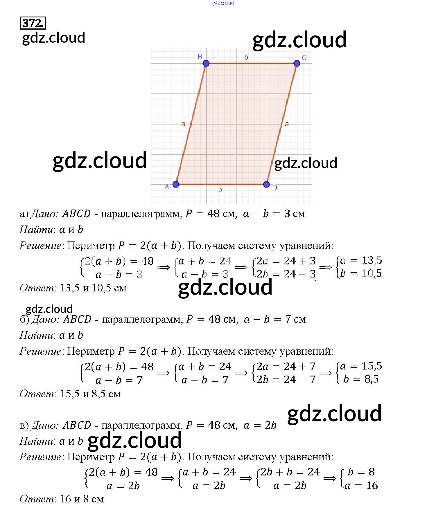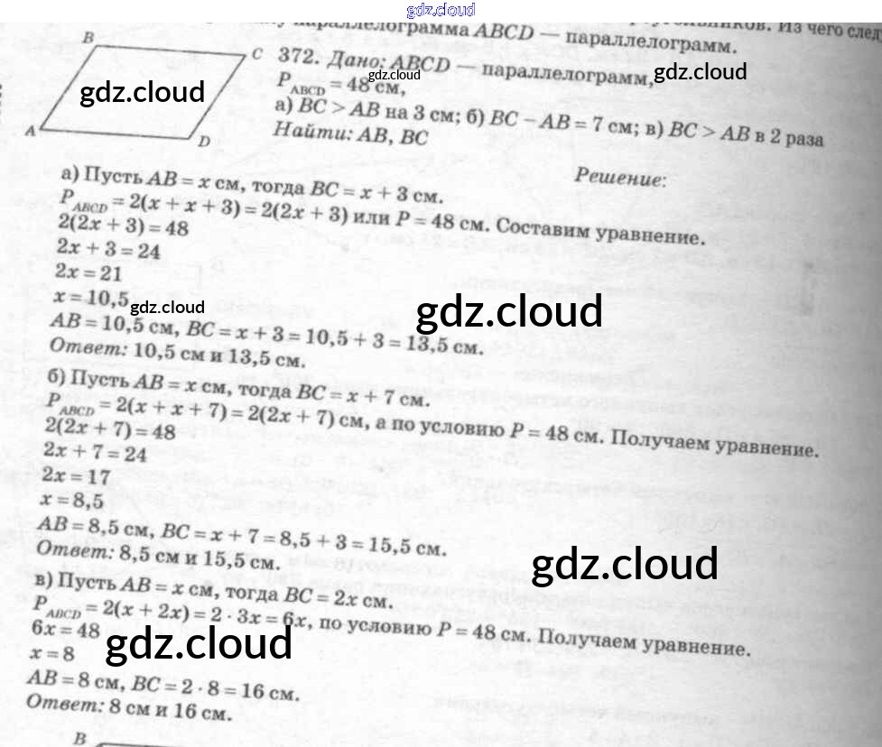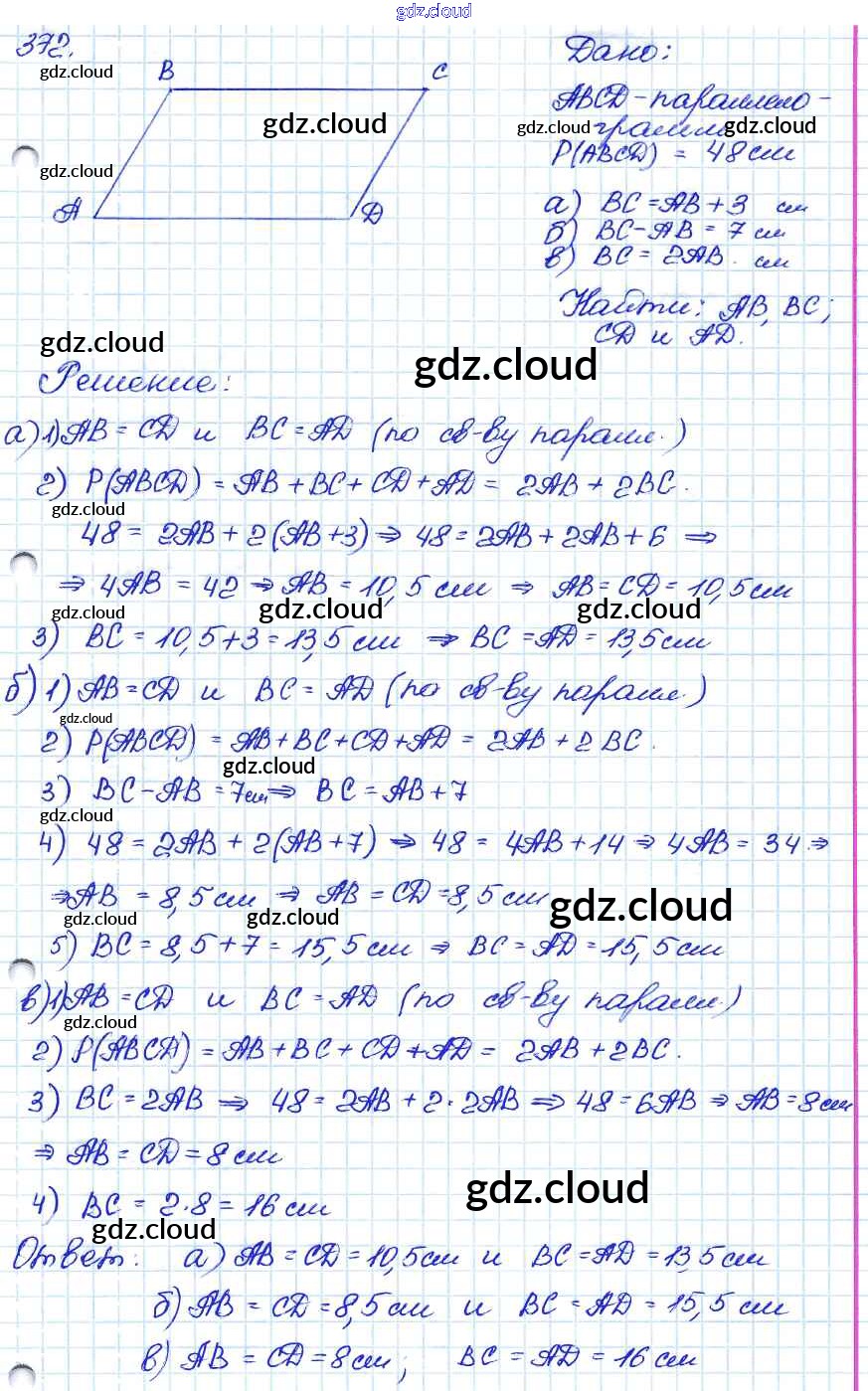 Ответ на задание 372 Учебник Геометрия за 7, 8, 9 (седьмой, восьмой, девятый) класс Атанасян, Бутузов, Кадомцев 2010
