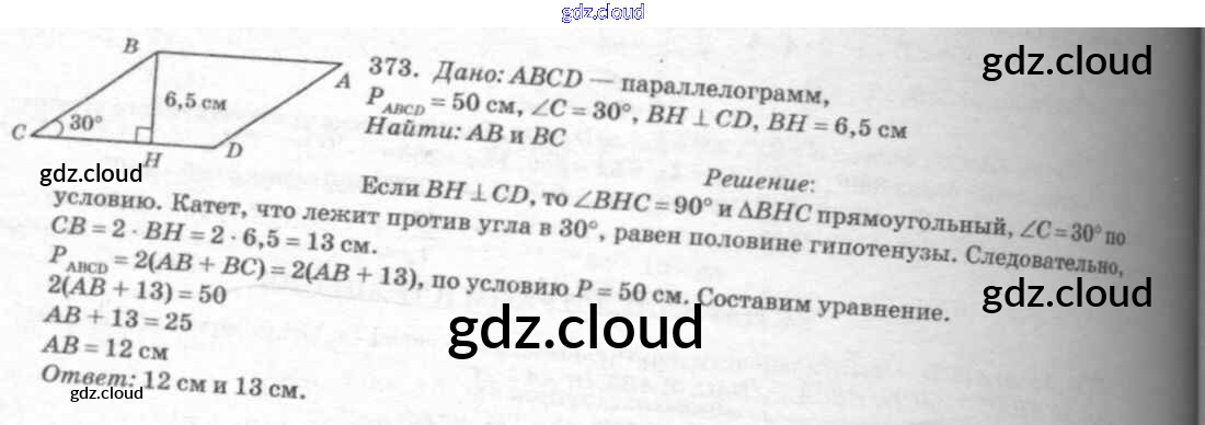 Ответ на задание 373 Учебник Геометрия за 7, 8, 9 (седьмой, восьмой, девятый) класс Атанасян, Бутузов, Кадомцев 2010