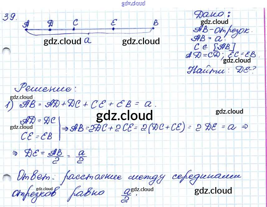 Ответ на задание 39 Учебник Геометрия за 7, 8, 9 (седьмой, восьмой, девятый) класс Атанасян, Бутузов, Кадомцев 2010
