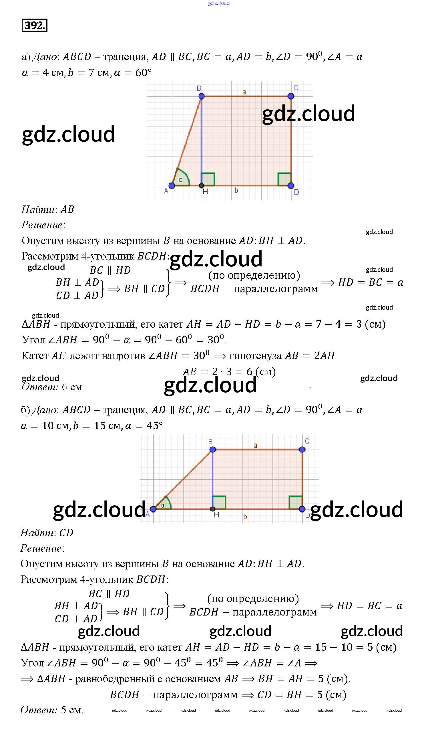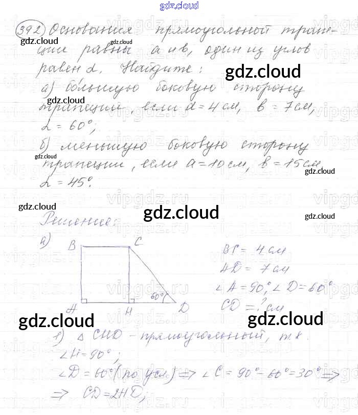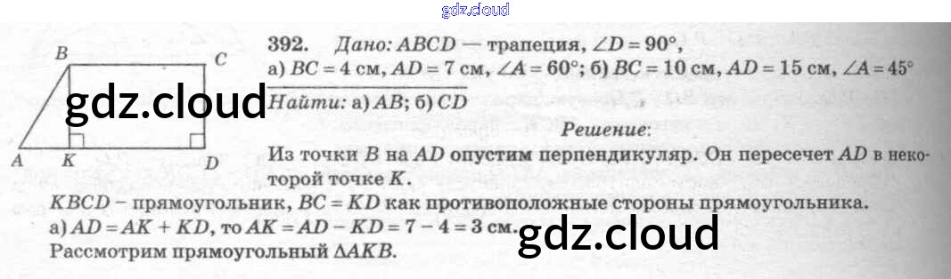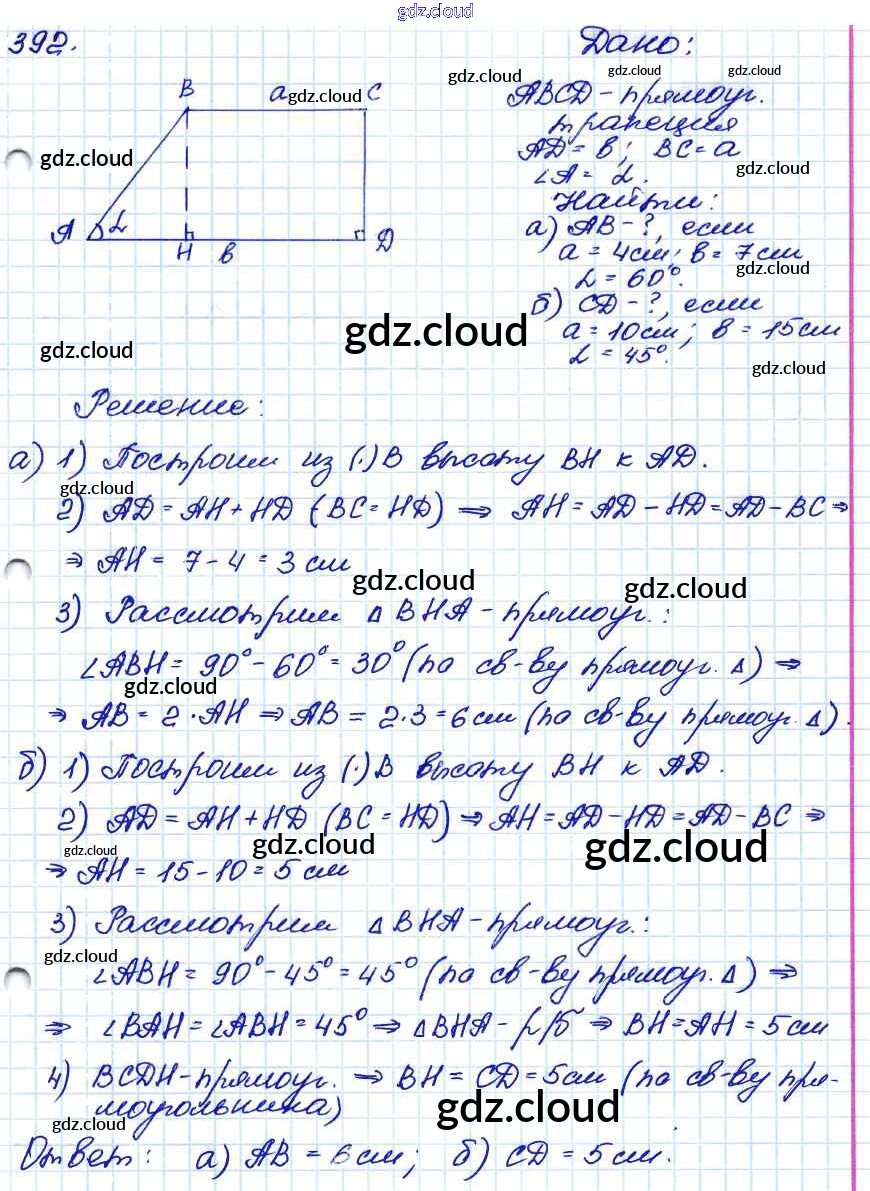 Ответ на задание 392 Учебник Геометрия за 7, 8, 9 (седьмой, восьмой, девятый) класс Атанасян, Бутузов, Кадомцев 2010