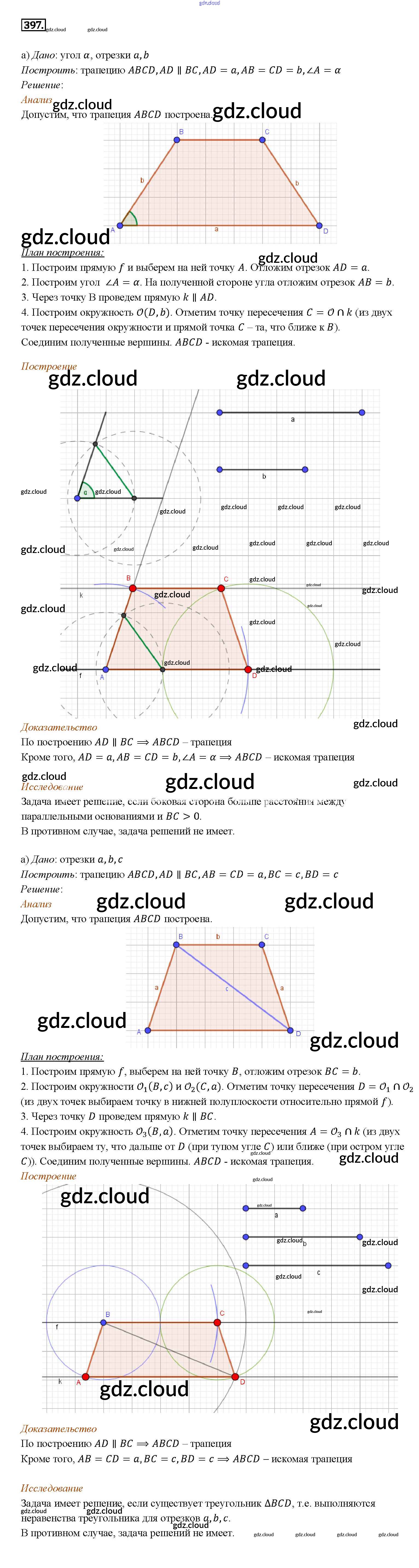 Ответ на задание 397 Учебник Геометрия за 7, 8, 9 (седьмой, восьмой, девятый) класс Атанасян, Бутузов, Кадомцев 2010