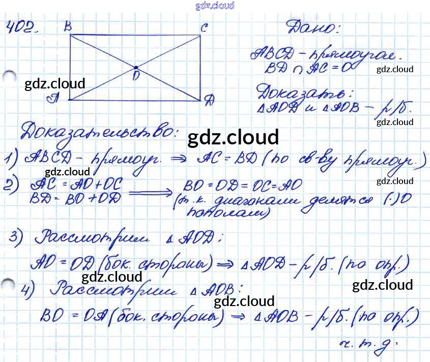 Ответ на задание 402 Учебник Геометрия за 7, 8, 9 (седьмой, восьмой, девятый) класс Атанасян, Бутузов, Кадомцев 2010