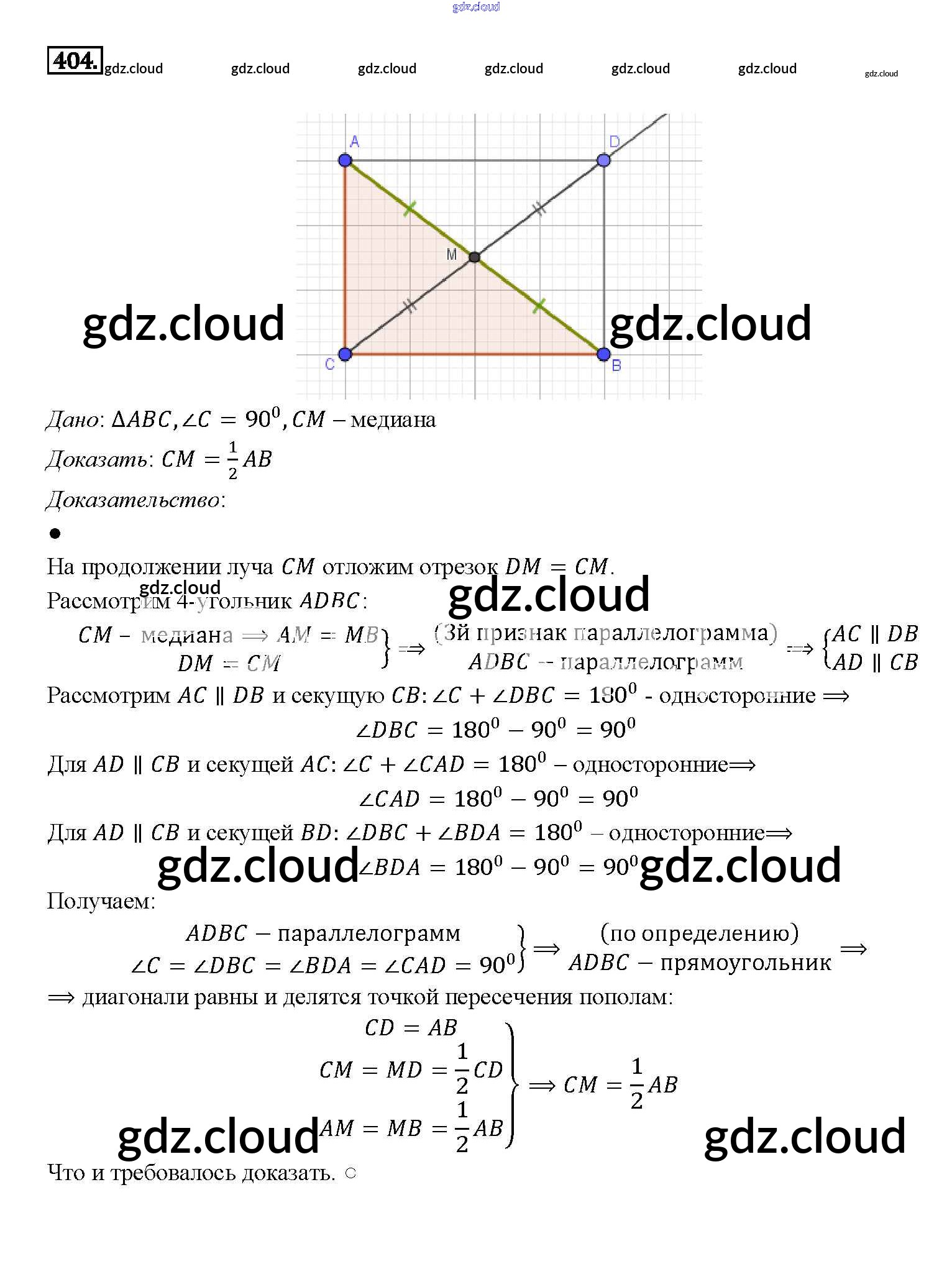 Ответ на задание 404 Учебник Геометрия за 7, 8, 9 (седьмой, восьмой, девятый) класс Атанасян, Бутузов, Кадомцев 2010