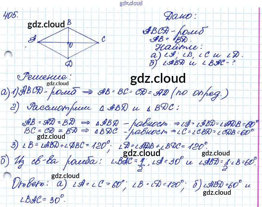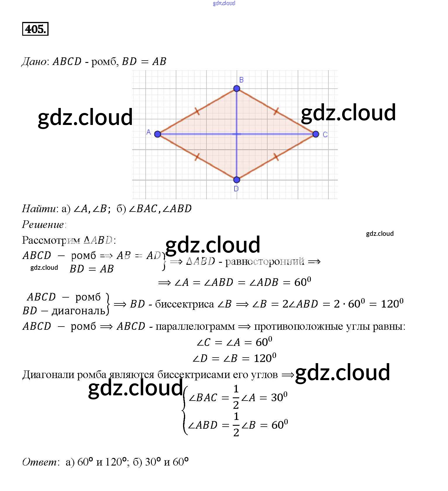 Ответ на задание 405 Учебник Геометрия за 7, 8, 9 (седьмой, восьмой, девятый) класс Атанасян, Бутузов, Кадомцев 2010