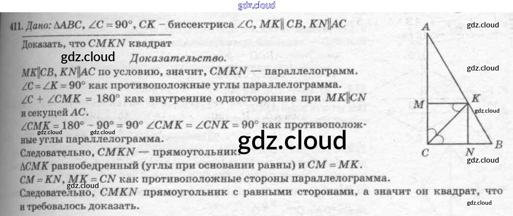 Ответ на задание 411 Учебник Геометрия за 7, 8, 9 (седьмой, восьмой, девятый) класс Атанасян, Бутузов, Кадомцев 2010
