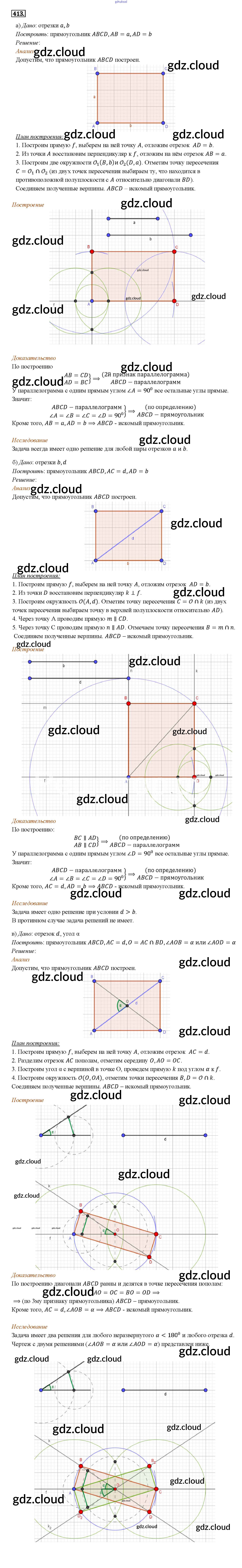Ответ на задание 413 Учебник Геометрия за 7, 8, 9 (седьмой, восьмой, девятый) класс Атанасян, Бутузов, Кадомцев 2010