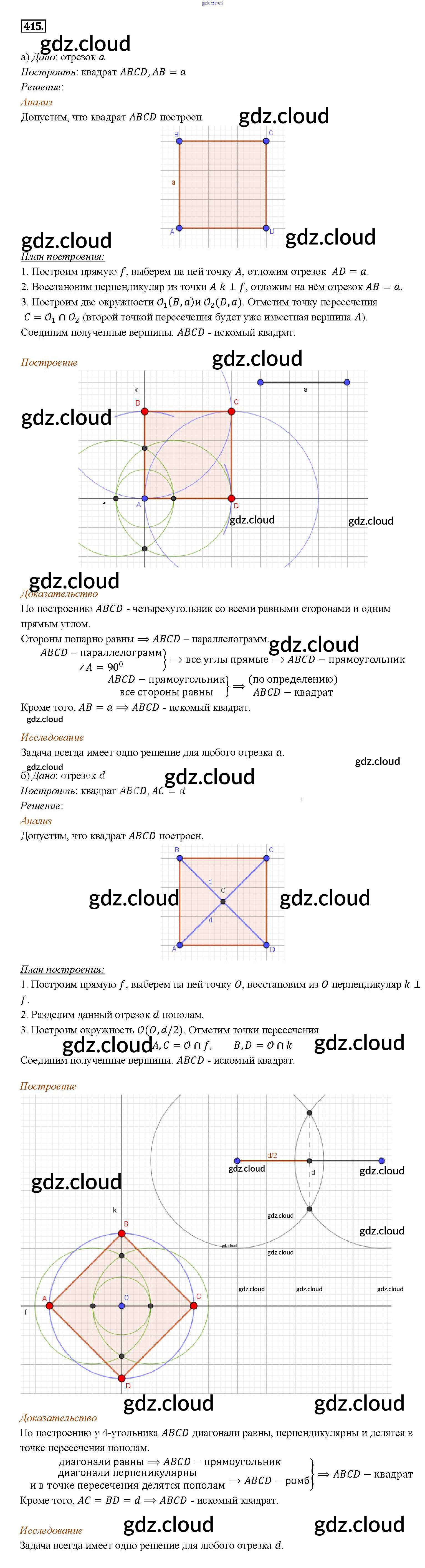Ответ на задание 415 Учебник Геометрия за 7, 8, 9 (седьмой, восьмой, девятый) класс Атанасян, Бутузов, Кадомцев 2010