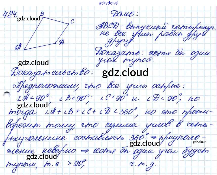 Ответ на задание 424 Учебник Геометрия за 7, 8, 9 (седьмой, восьмой, девятый) класс Атанасян, Бутузов, Кадомцев 2010