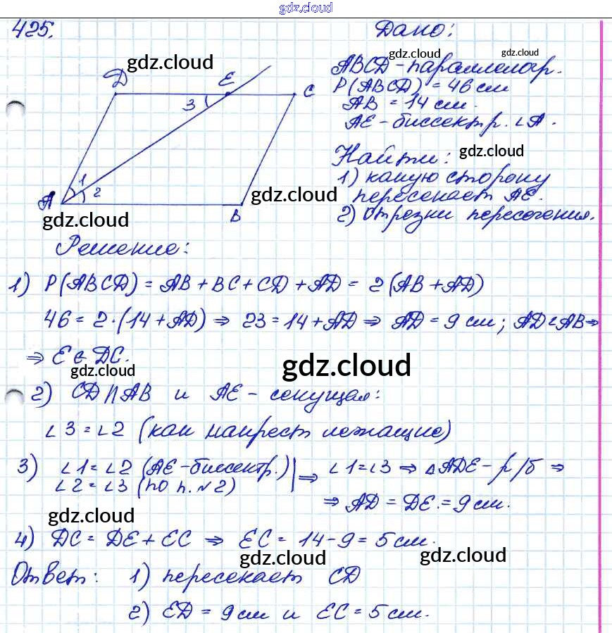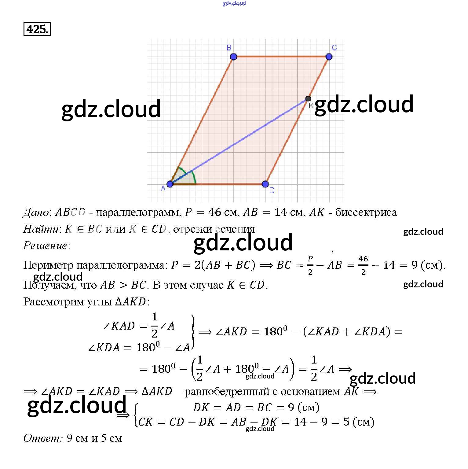 Ответ на задание 425 Учебник Геометрия за 7, 8, 9 (седьмой, восьмой, девятый) класс Атанасян, Бутузов, Кадомцев 2010