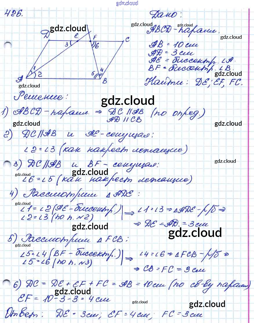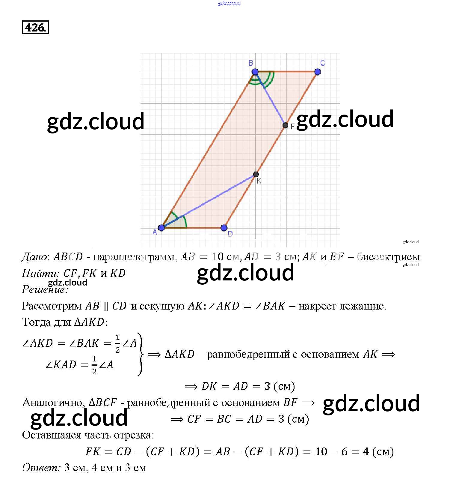 Ответ на задание 426 Учебник Геометрия за 7, 8, 9 (седьмой, восьмой, девятый) класс Атанасян, Бутузов, Кадомцев 2010