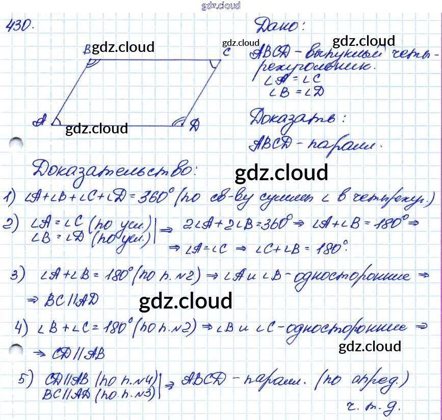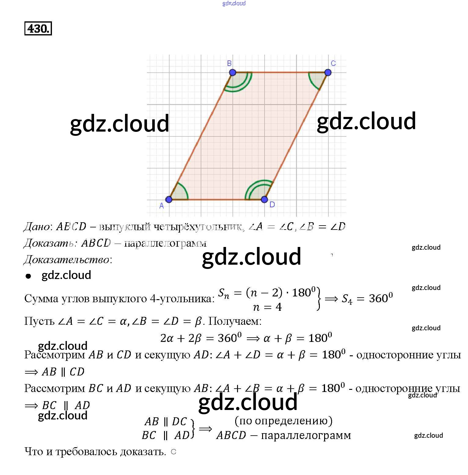 Ответ на задание 430 Учебник Геометрия за 7, 8, 9 (седьмой, восьмой, девятый) класс Атанасян, Бутузов, Кадомцев 2010