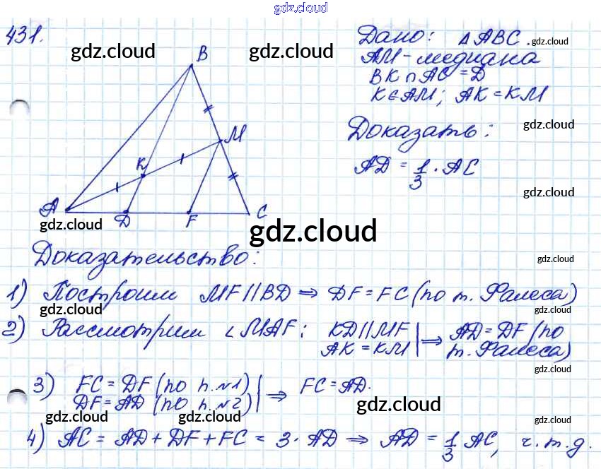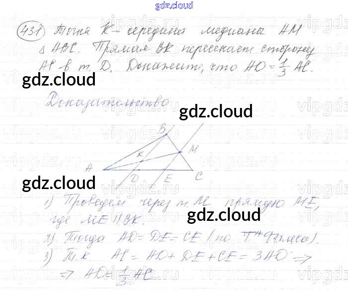 Ответ на задание 431 Учебник Геометрия за 7, 8, 9 (седьмой, восьмой, девятый) класс Атанасян, Бутузов, Кадомцев 2010