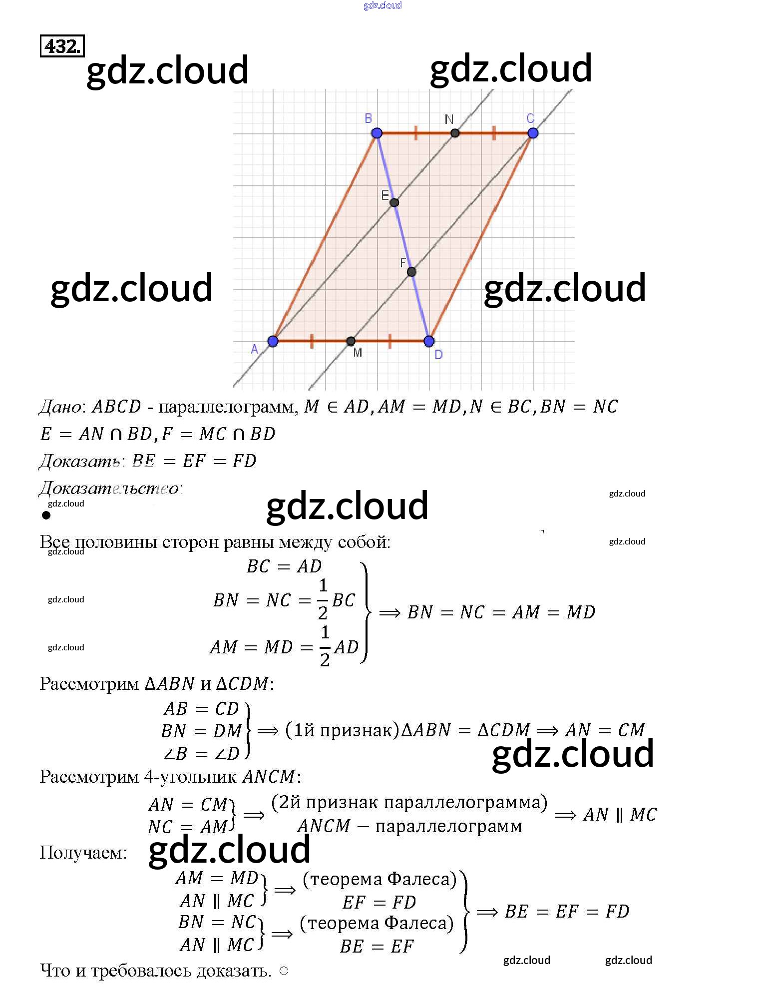 Ответ на задание 432 Учебник Геометрия за 7, 8, 9 (седьмой, восьмой, девятый) класс Атанасян, Бутузов, Кадомцев 2010