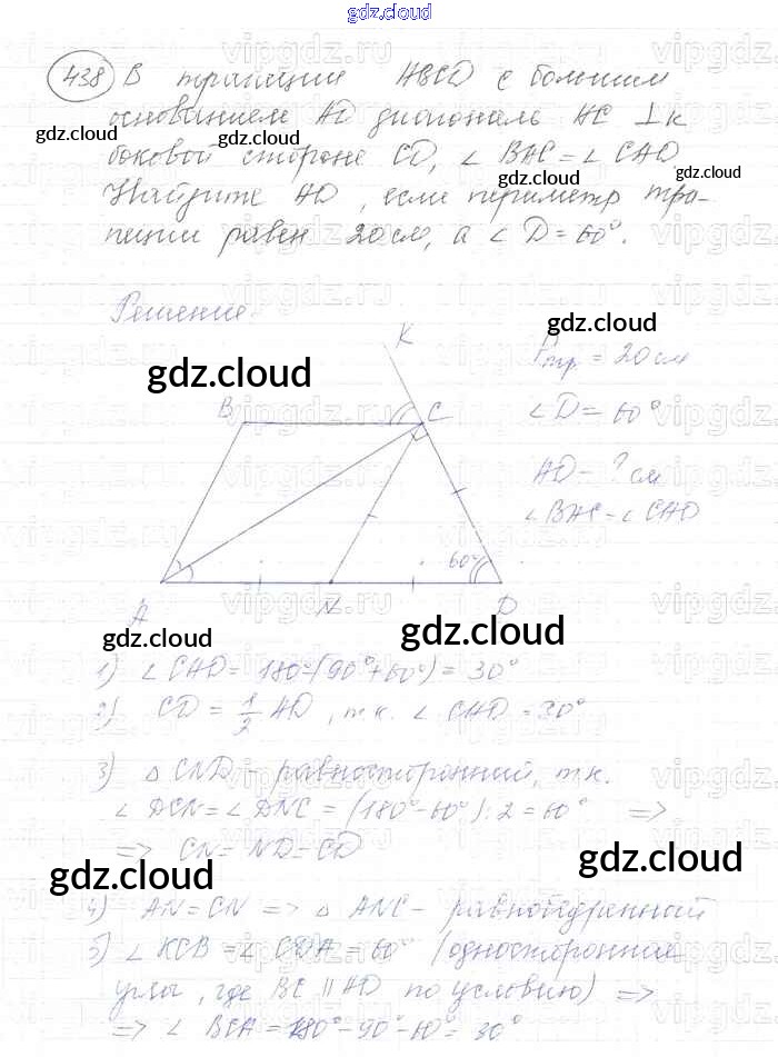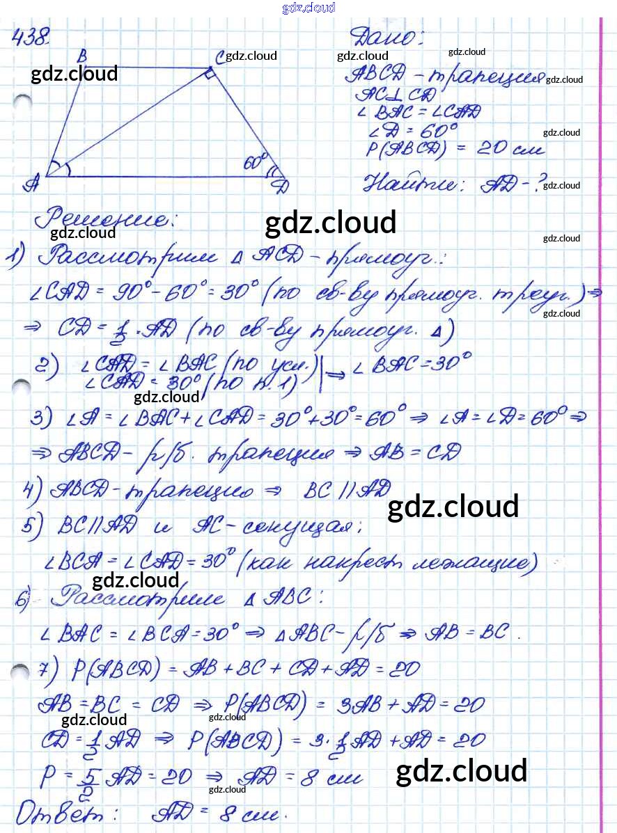 Ответ на задание 438 Учебник Геометрия за 7, 8, 9 (седьмой, восьмой, девятый) класс Атанасян, Бутузов, Кадомцев 2010