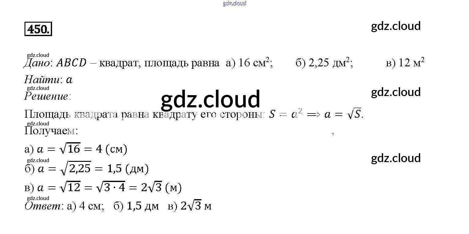 Ответ на задание 450 Учебник Геометрия за 7, 8, 9 (седьмой, восьмой, девятый) класс Атанасян, Бутузов, Кадомцев 2010