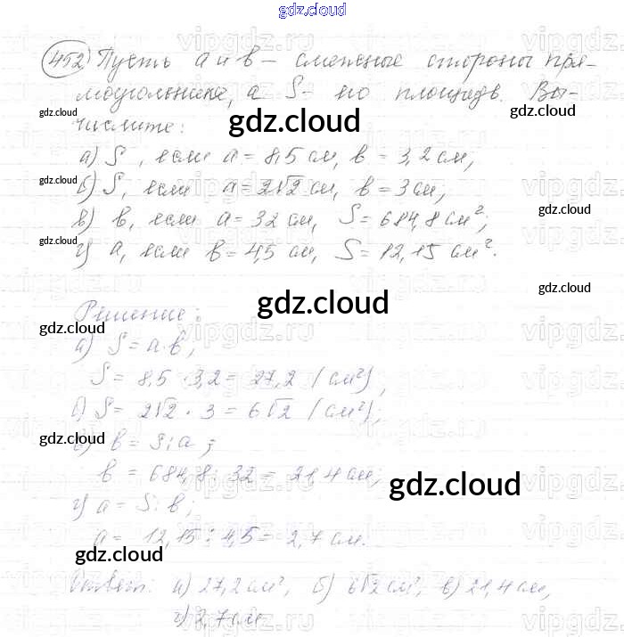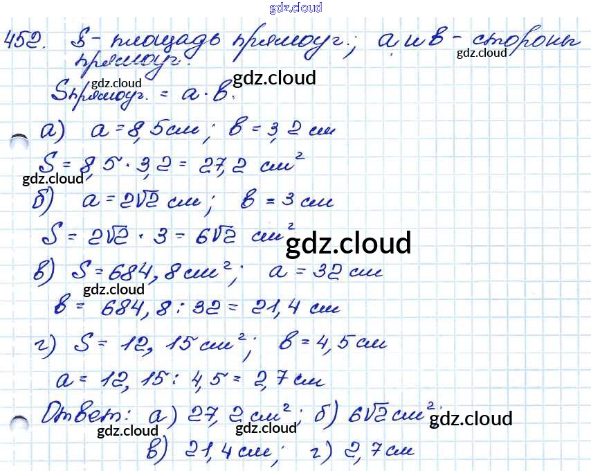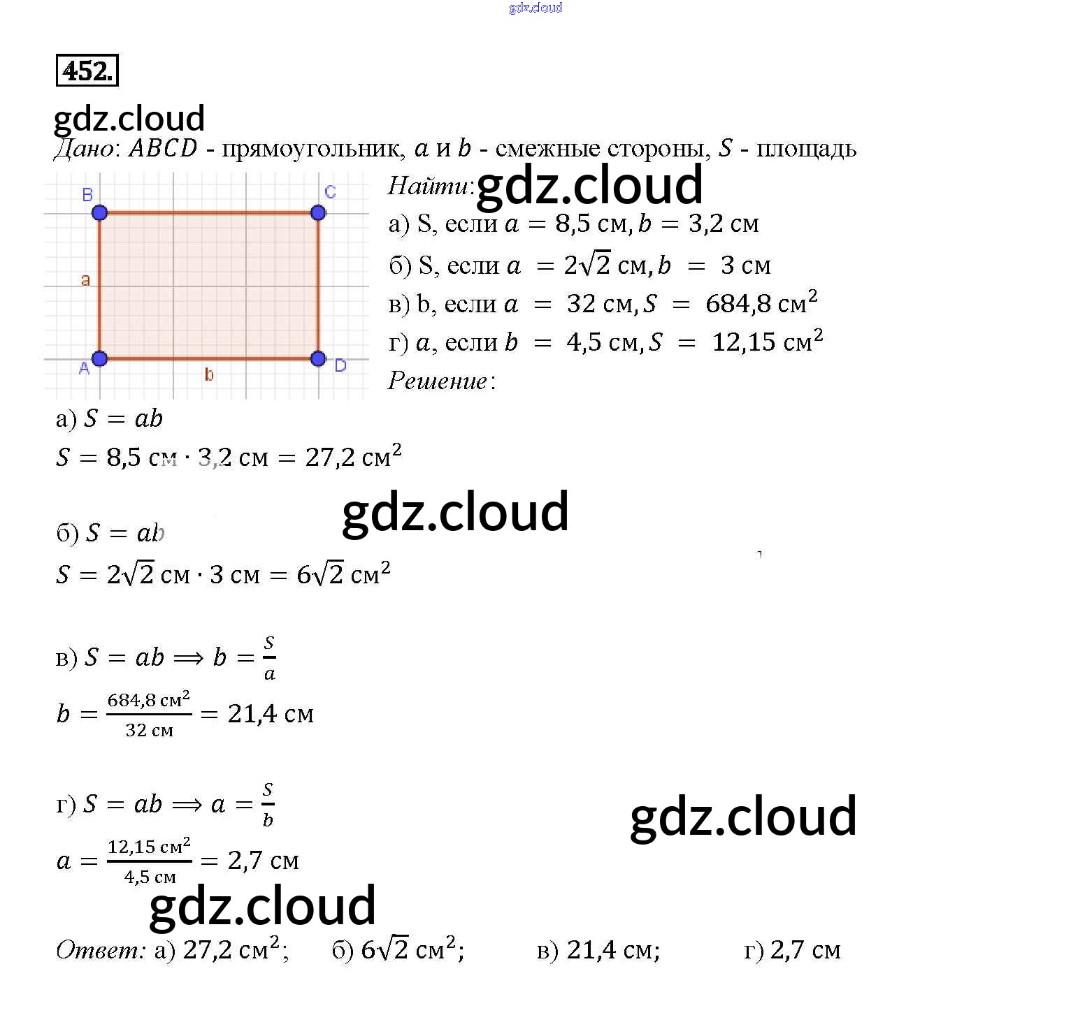 Ответ на задание 452 Учебник Геометрия за 7, 8, 9 (седьмой, восьмой, девятый) класс Атанасян, Бутузов, Кадомцев 2010
