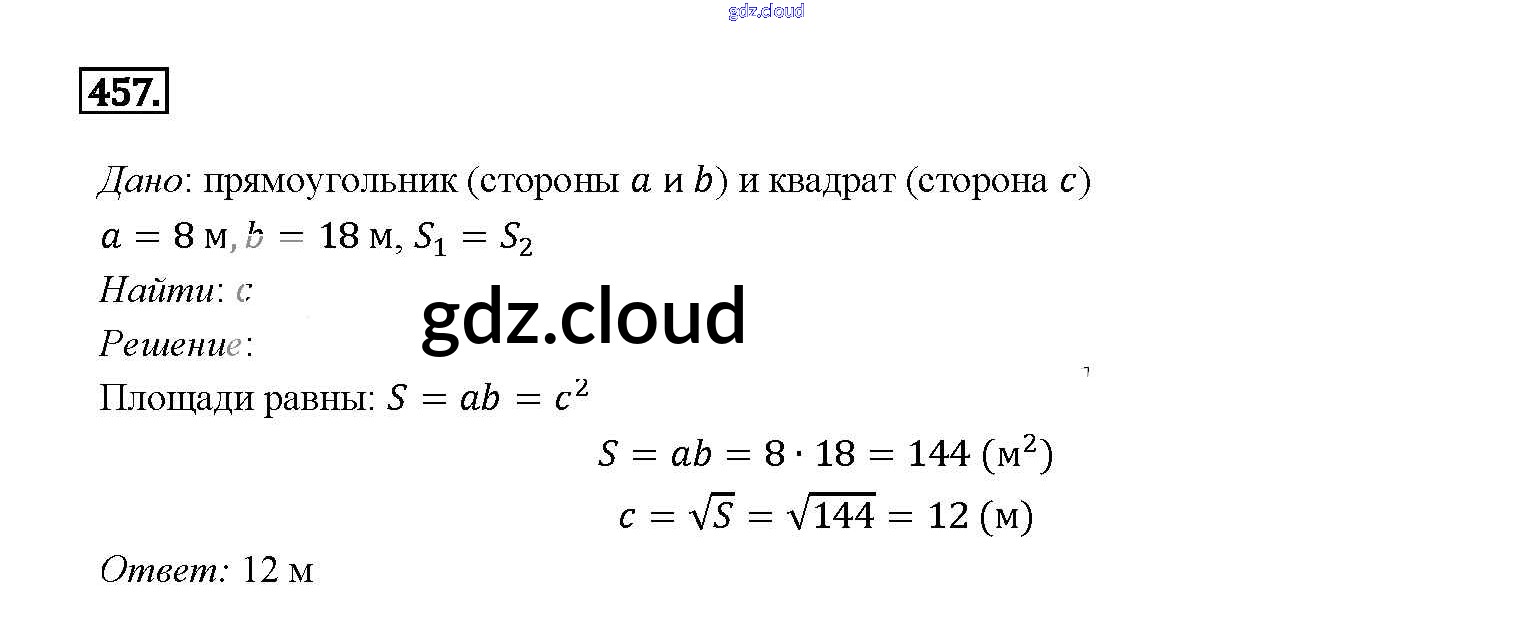 Ответ на задание 457 Учебник Геометрия за 7, 8, 9 (седьмой, восьмой, девятый) класс Атанасян, Бутузов, Кадомцев 2010