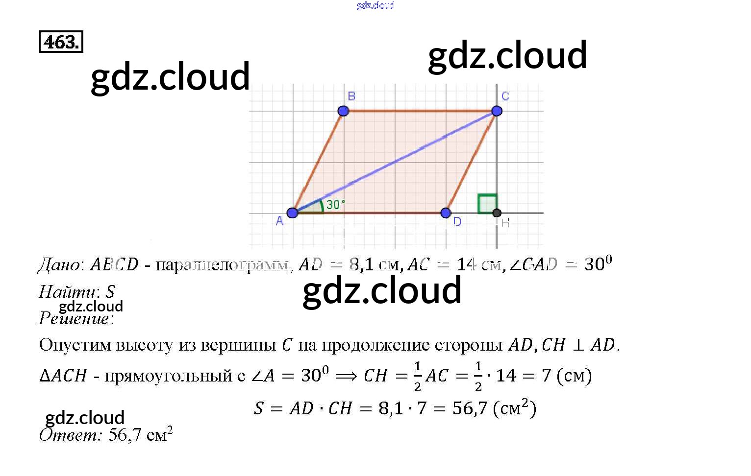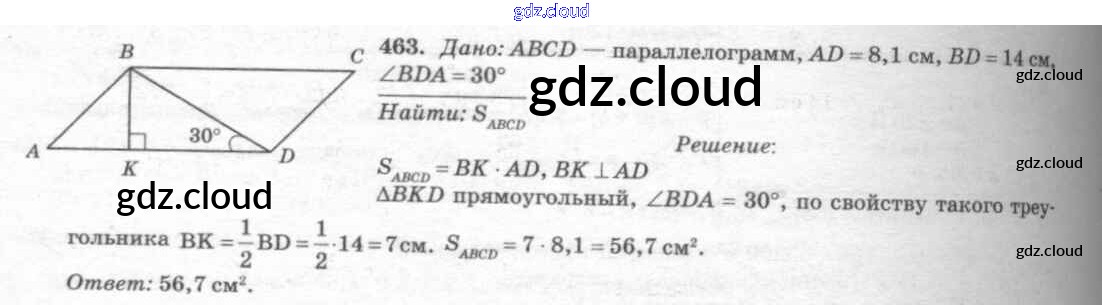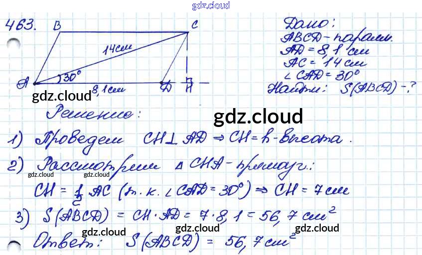 Ответ на задание 463 Учебник Геометрия за 7, 8, 9 (седьмой, восьмой, девятый) класс Атанасян, Бутузов, Кадомцев 2010