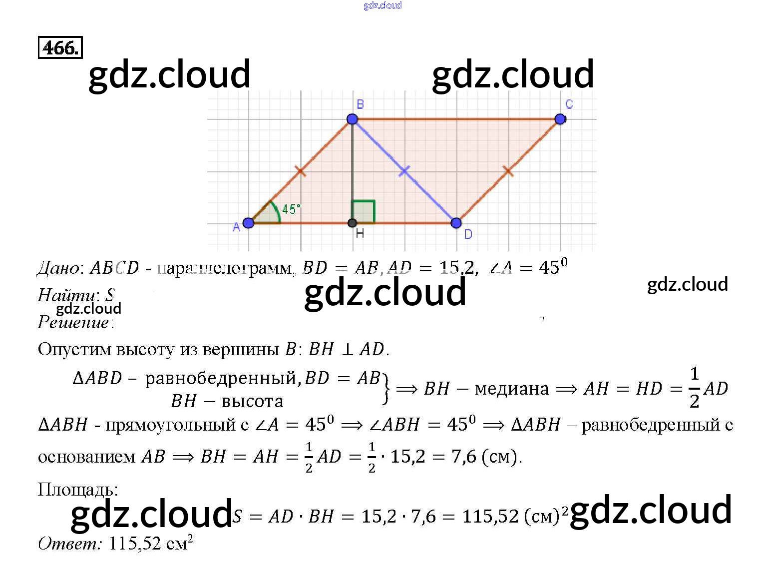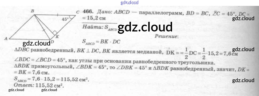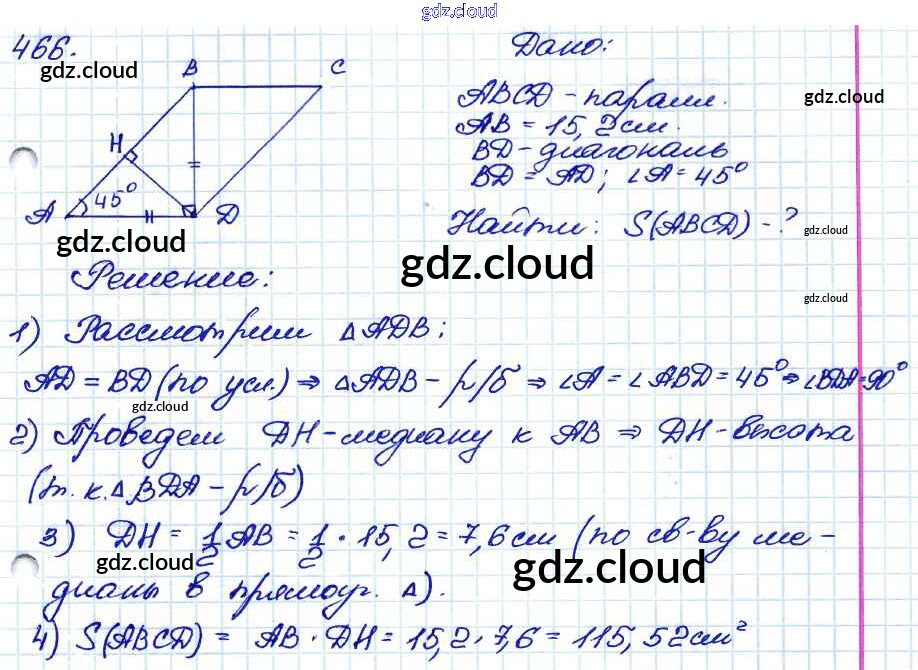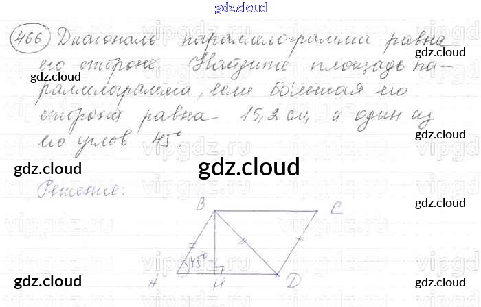 Ответ на задание 466 Учебник Геометрия за 7, 8, 9 (седьмой, восьмой, девятый) класс Атанасян, Бутузов, Кадомцев 2010