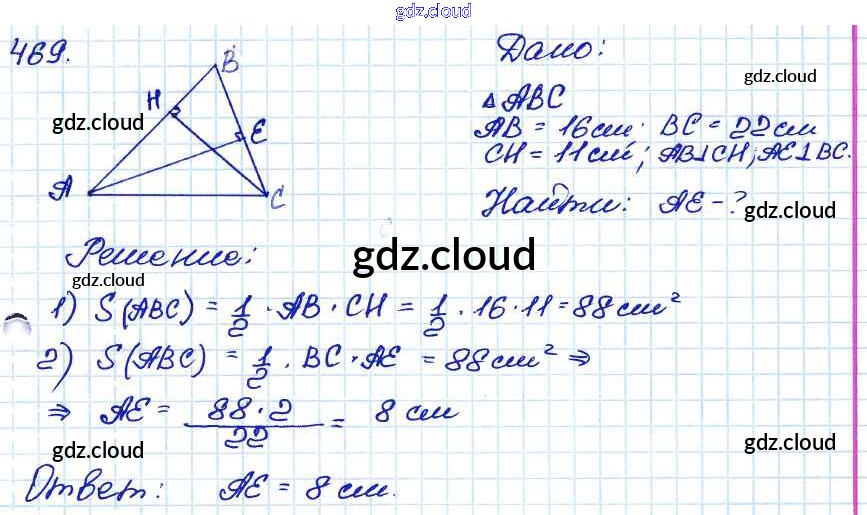 Ответ на задание 469 Учебник Геометрия за 7, 8, 9 (седьмой, восьмой, девятый) класс Атанасян, Бутузов, Кадомцев 2010
