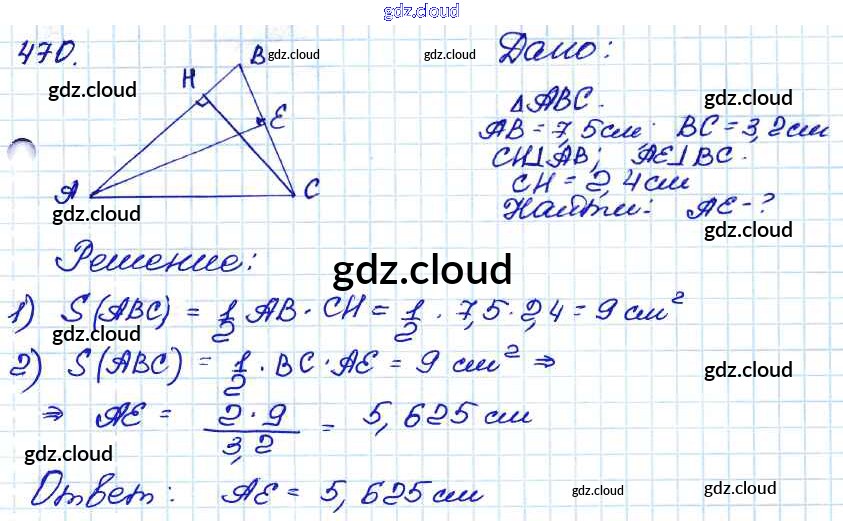 Ответ на задание 470 Учебник Геометрия за 7, 8, 9 (седьмой, восьмой, девятый) класс Атанасян, Бутузов, Кадомцев 2010