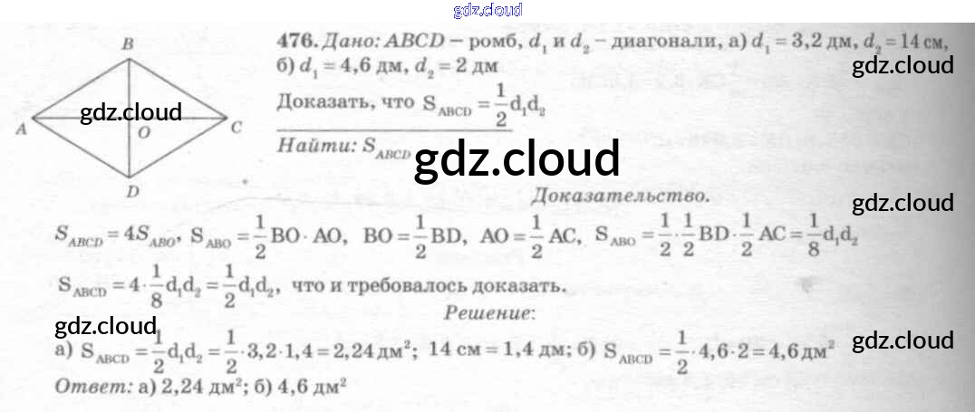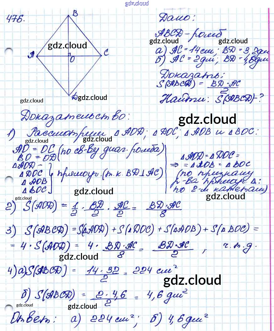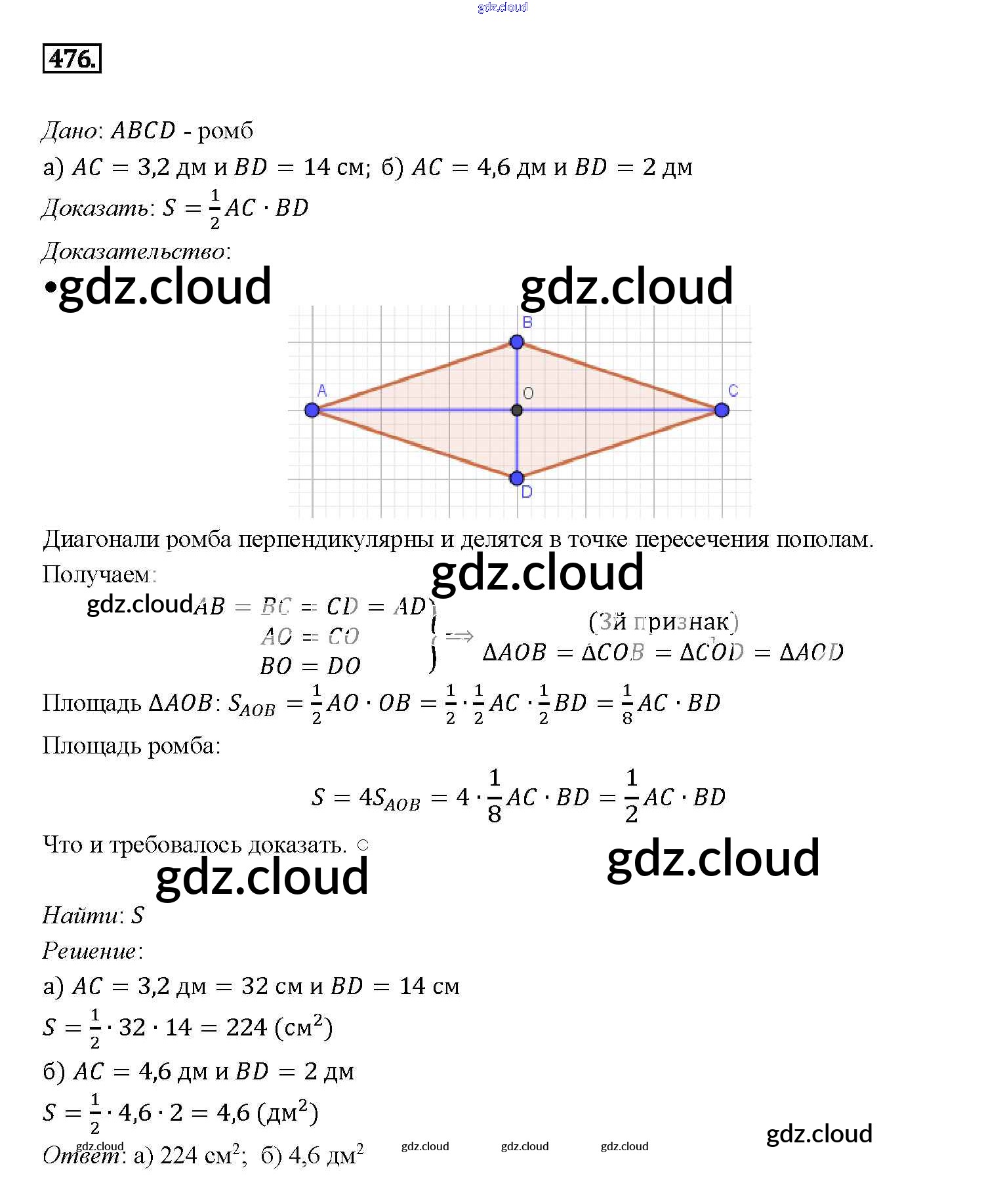 Ответ на задание 476 Учебник Геометрия за 7, 8, 9 (седьмой, восьмой, девятый) класс Атанасян, Бутузов, Кадомцев 2010