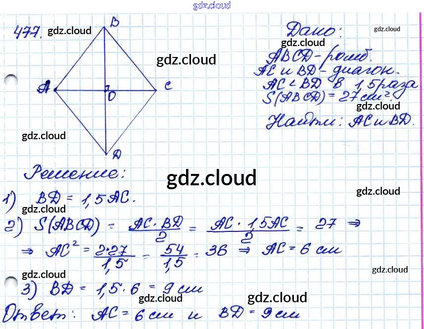 Ответ на задание 477 Учебник Геометрия за 7, 8, 9 (седьмой, восьмой, девятый) класс Атанасян, Бутузов, Кадомцев 2010