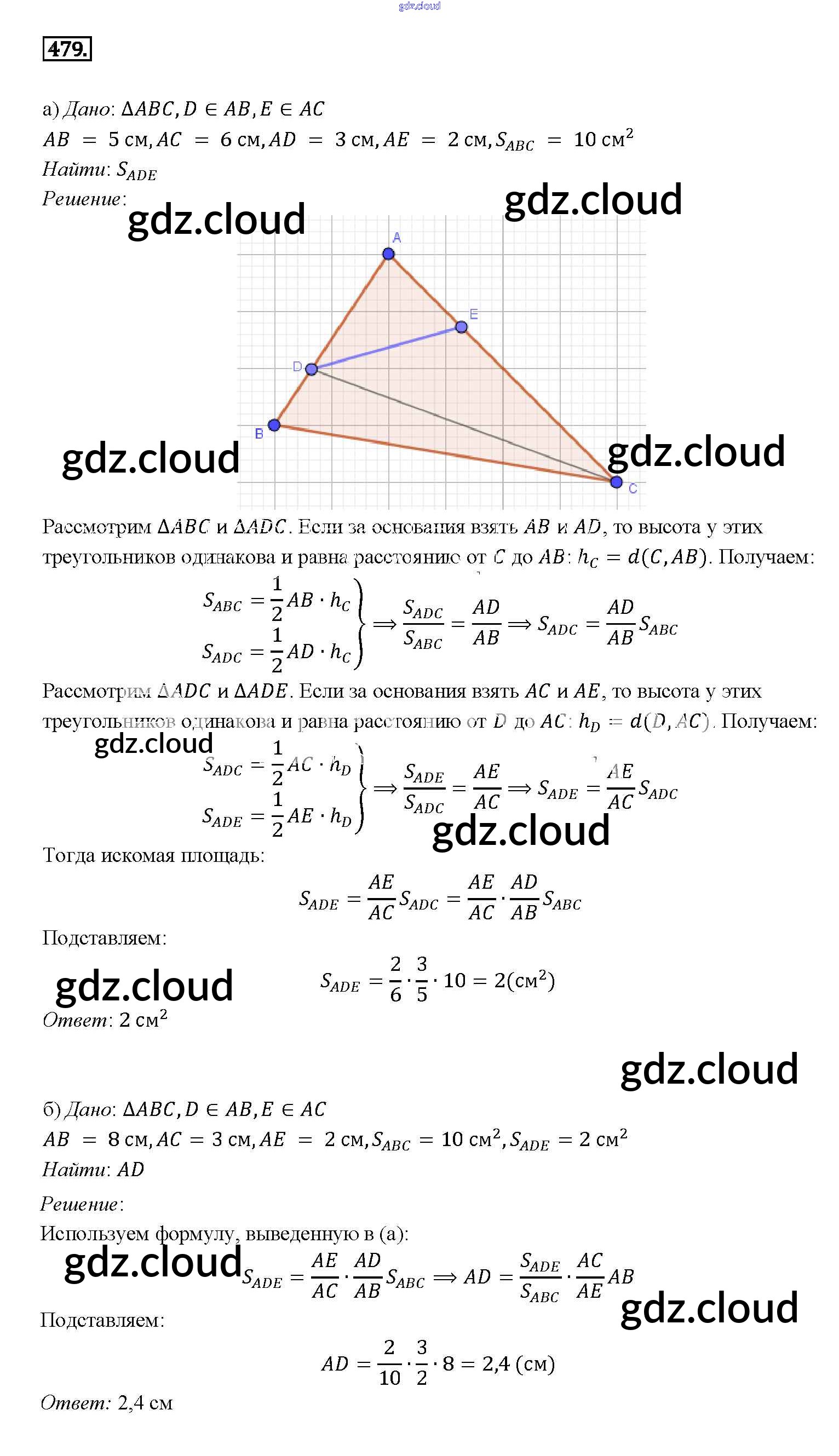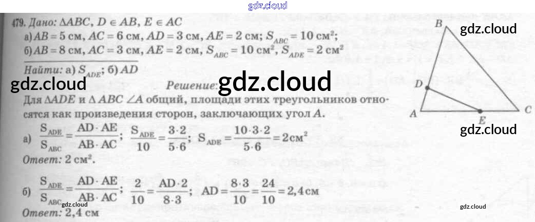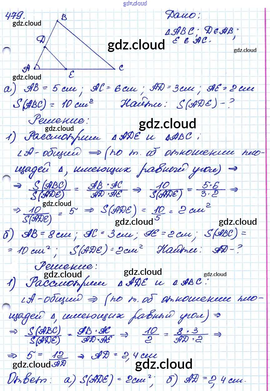 Ответ на задание 479 Учебник Геометрия за 7, 8, 9 (седьмой, восьмой, девятый) класс Атанасян, Бутузов, Кадомцев 2010