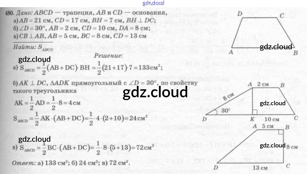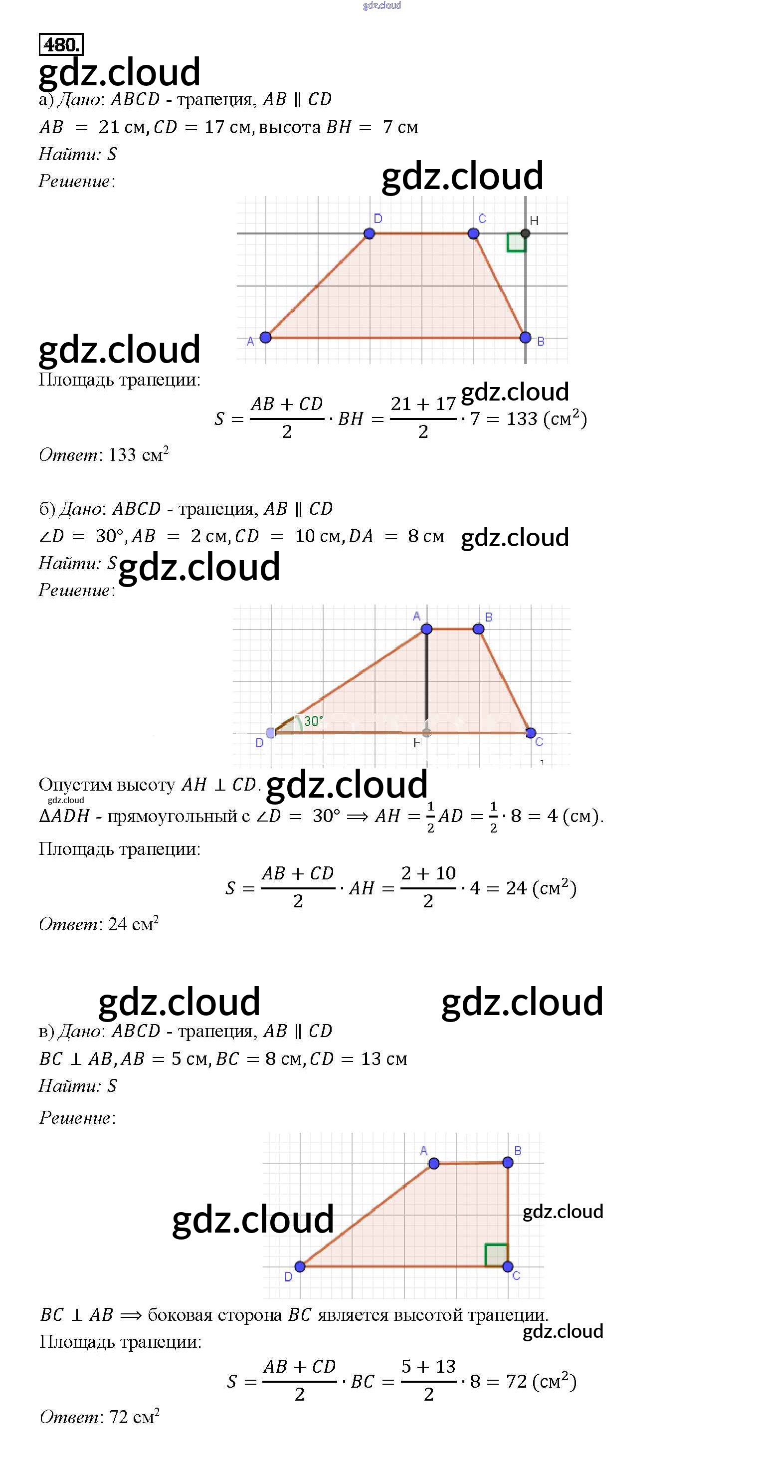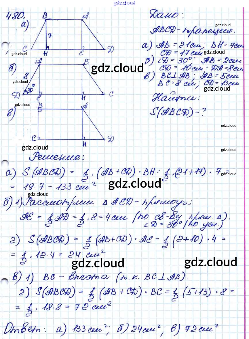 Ответ на задание 480 Учебник Геометрия за 7, 8, 9 (седьмой, восьмой, девятый) класс Атанасян, Бутузов, Кадомцев 2010