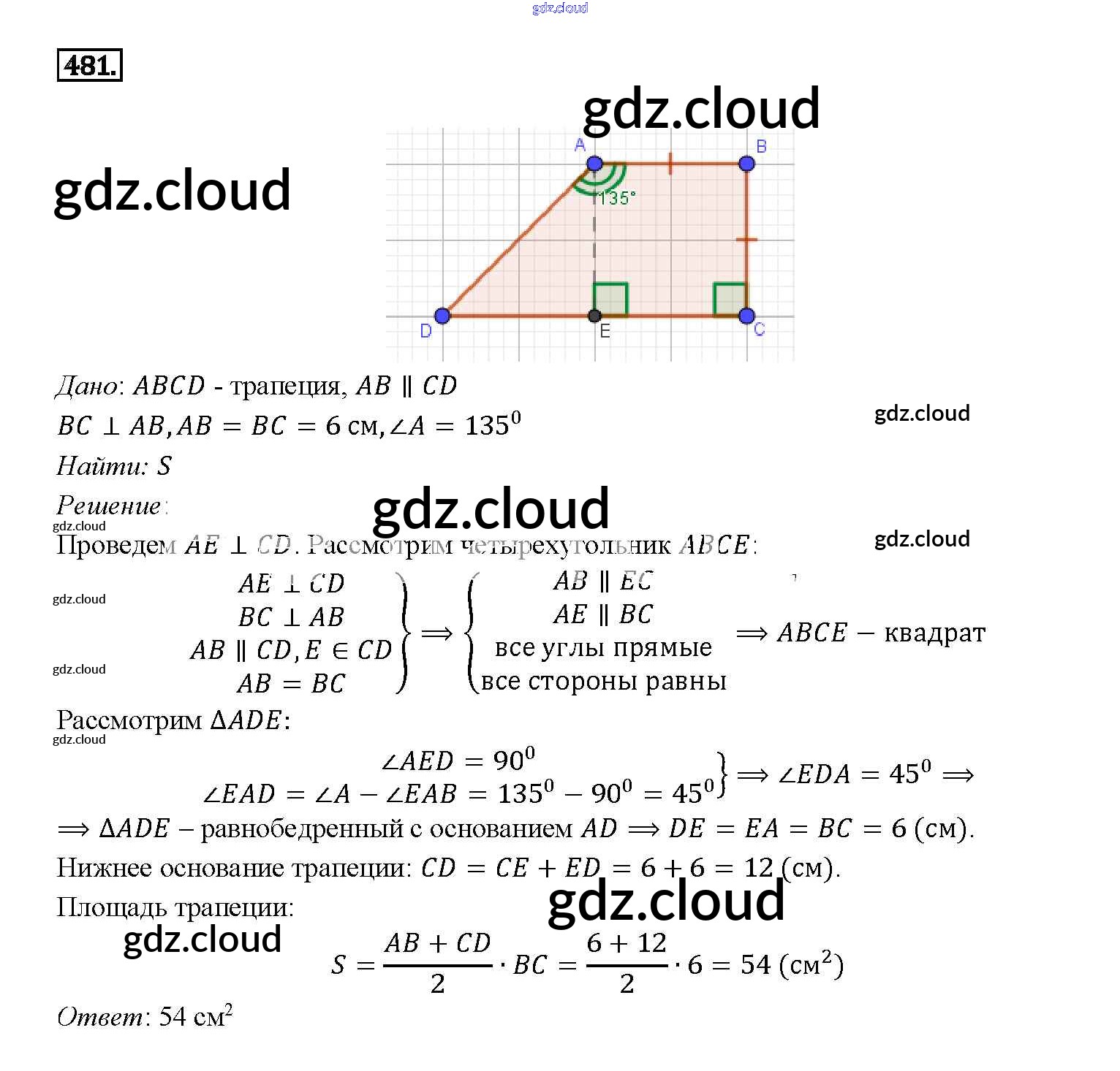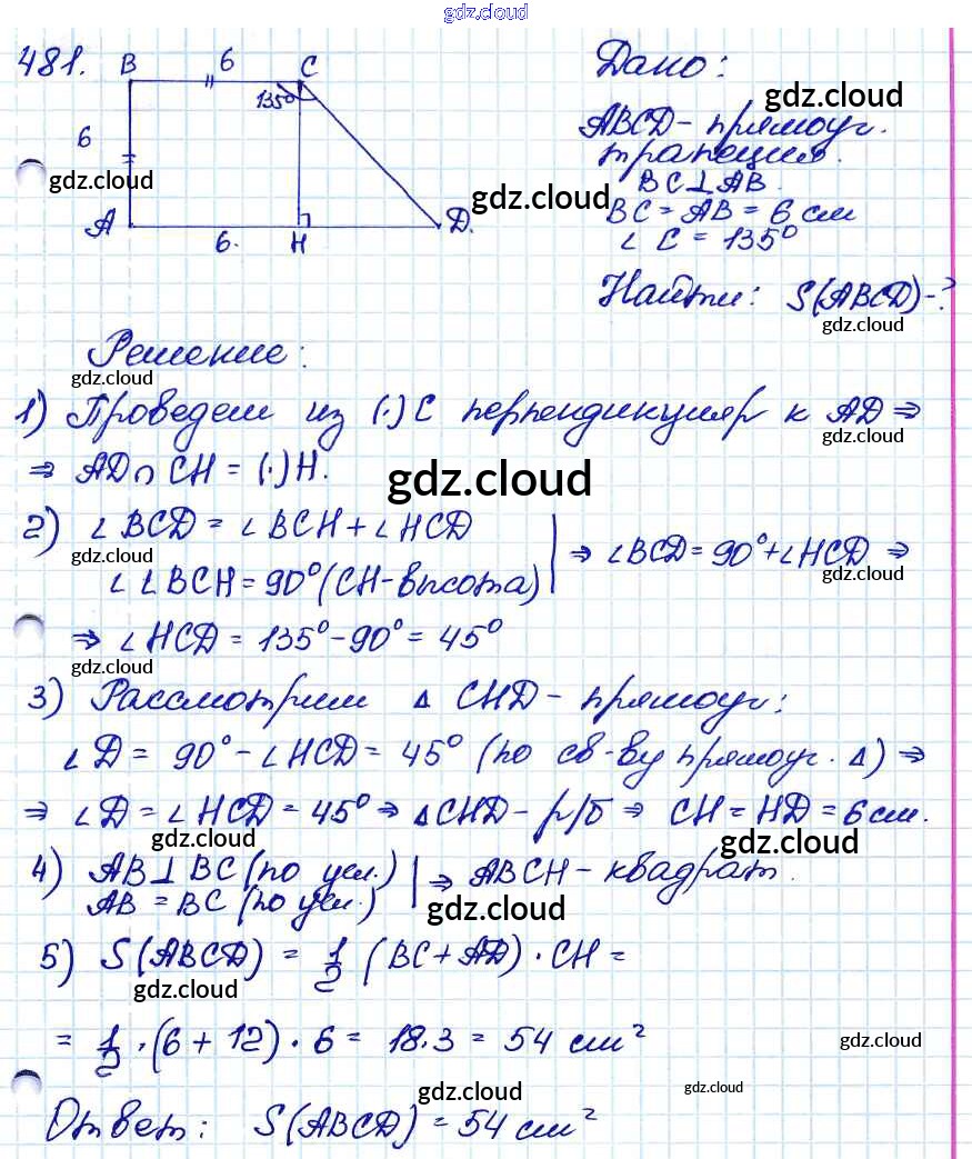 Ответ на задание 481 Учебник Геометрия за 7, 8, 9 (седьмой, восьмой, девятый) класс Атанасян, Бутузов, Кадомцев 2010