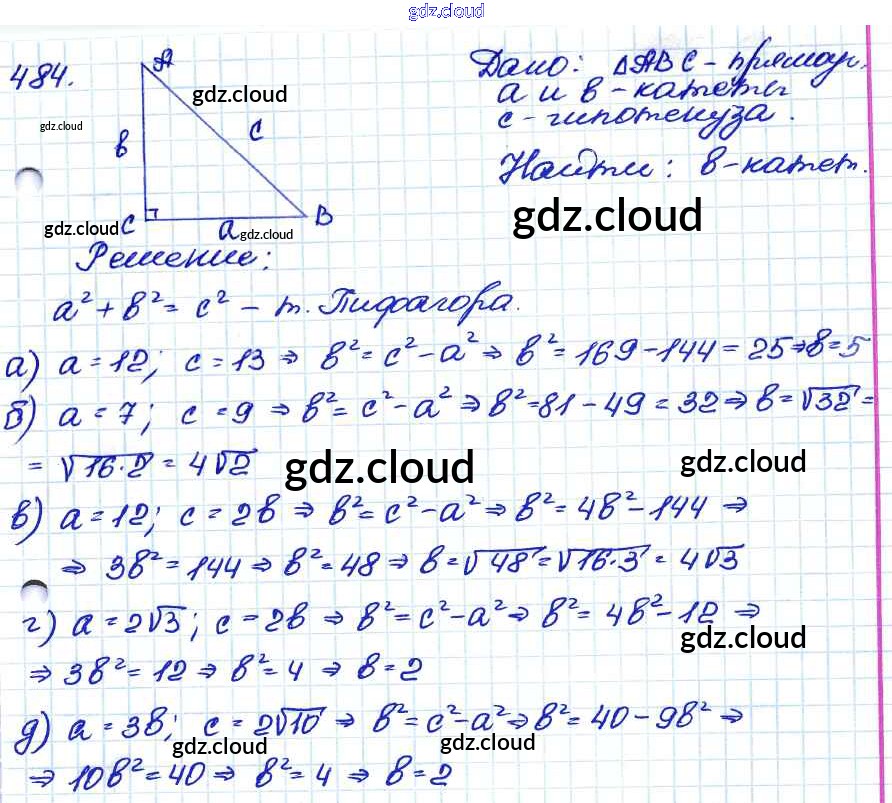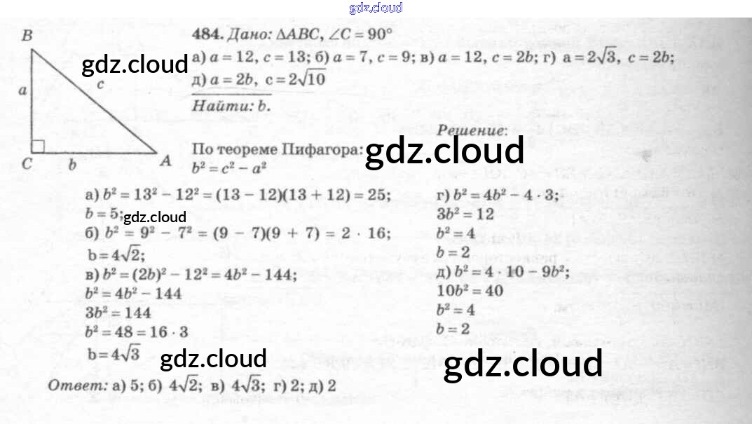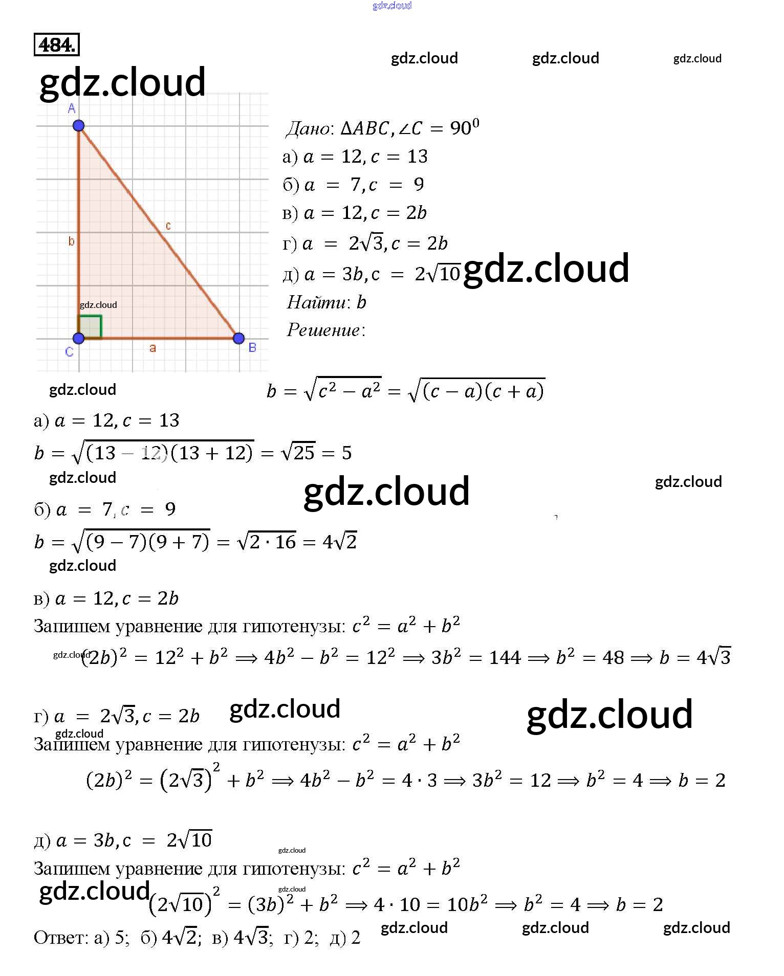 Ответ на задание 484 Учебник Геометрия за 7, 8, 9 (седьмой, восьмой, девятый) класс Атанасян, Бутузов, Кадомцев 2010