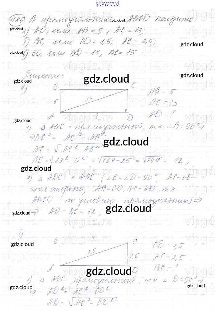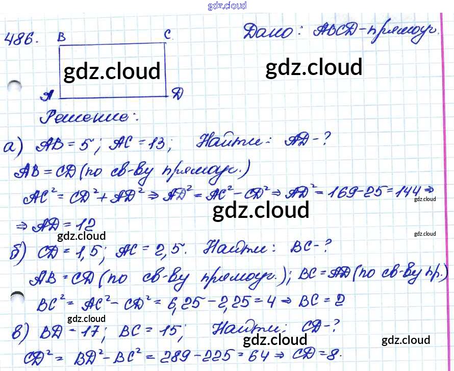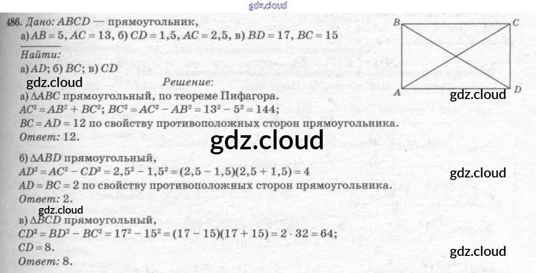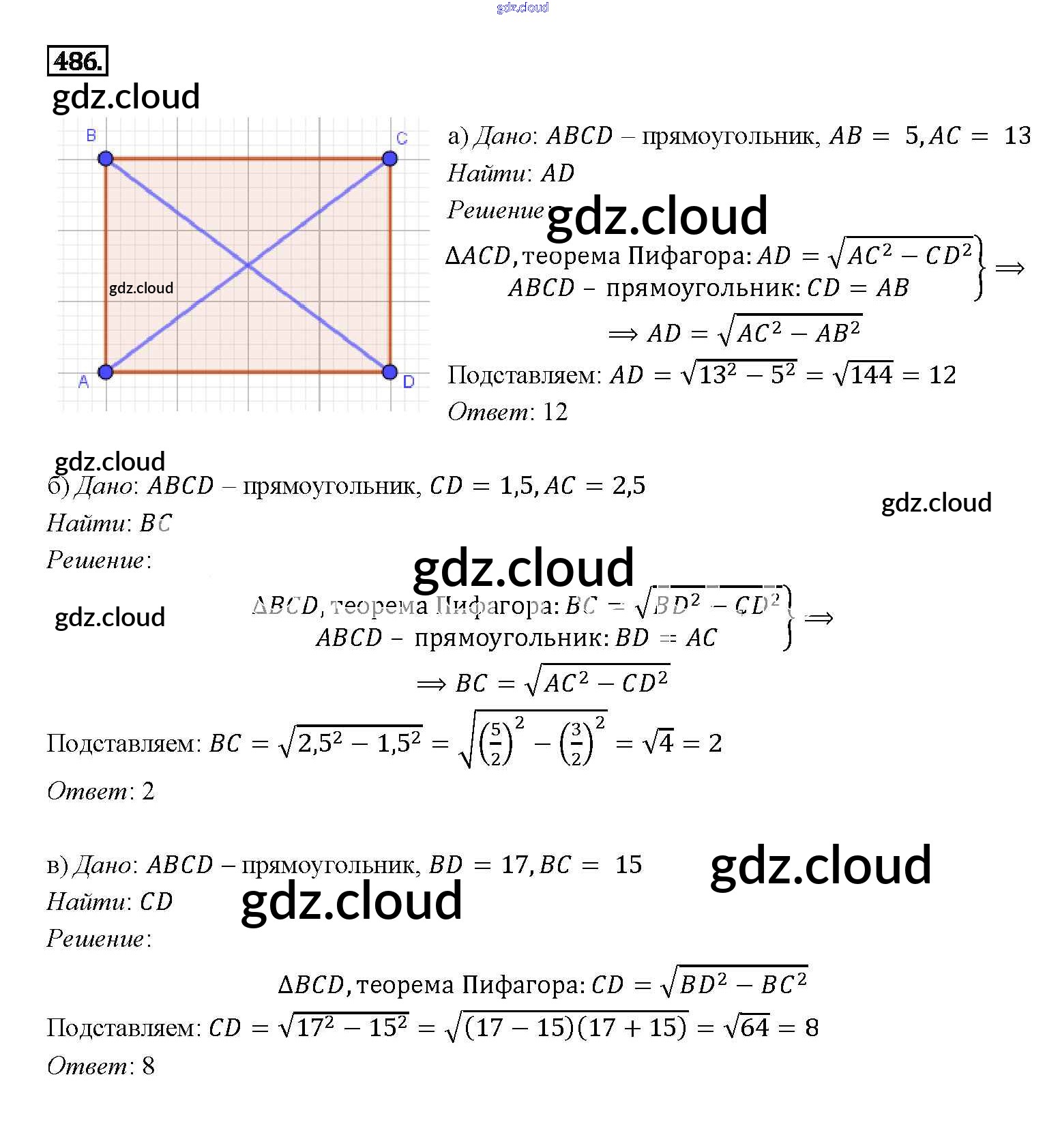 Ответ на задание 486 Учебник Геометрия за 7, 8, 9 (седьмой, восьмой, девятый) класс Атанасян, Бутузов, Кадомцев 2010