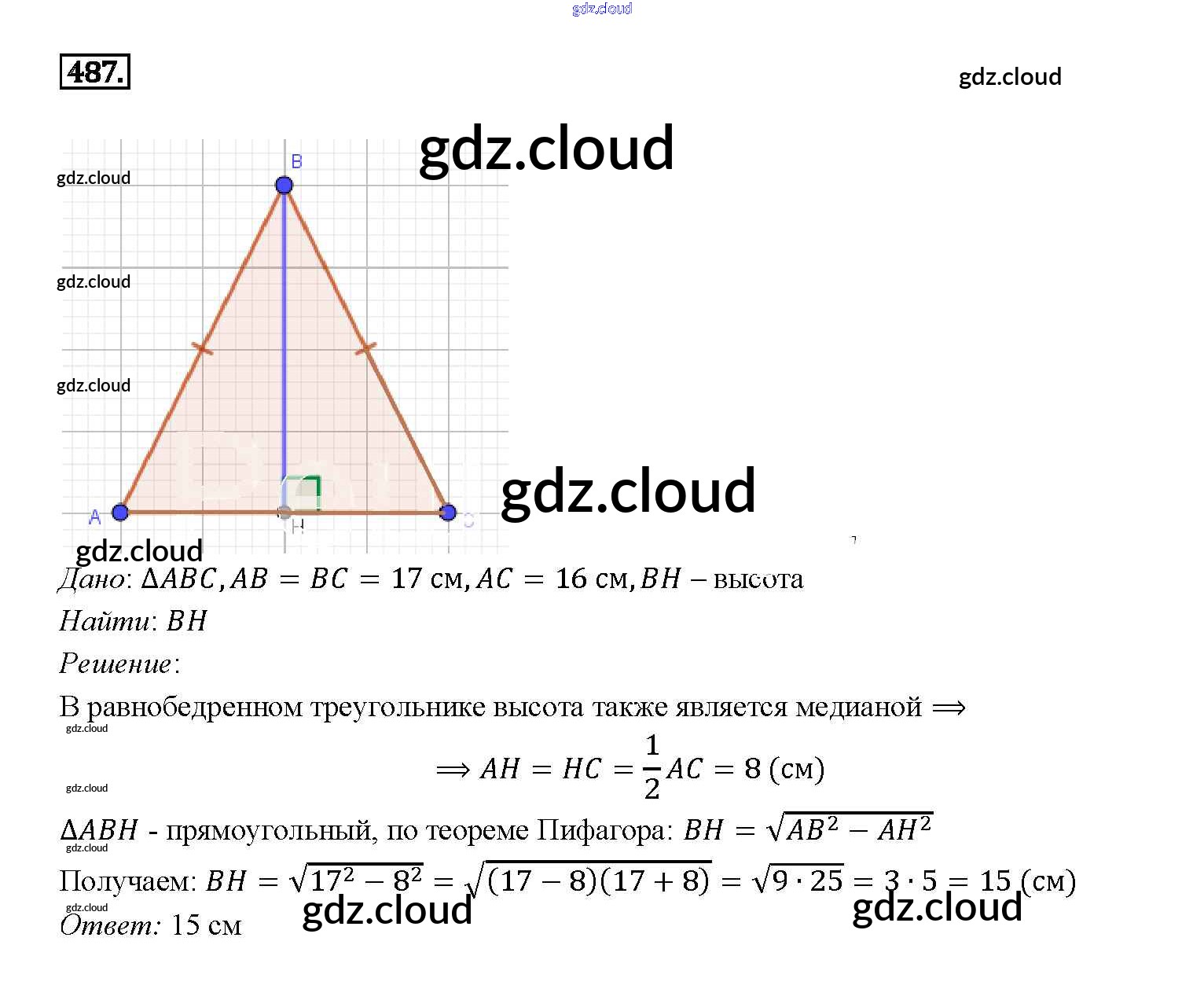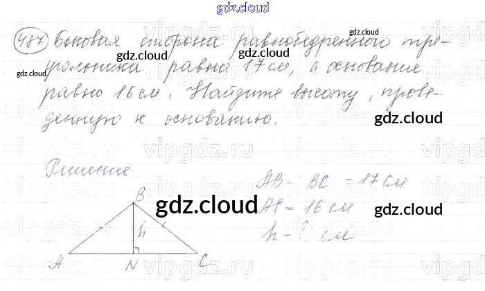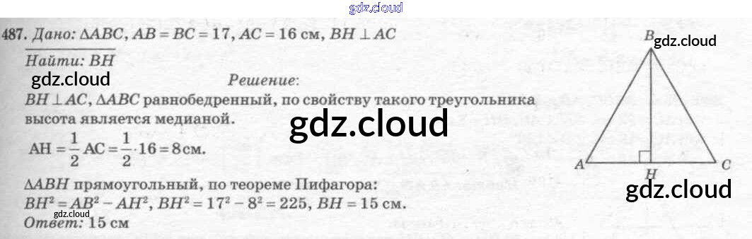 Ответ на задание 487 Учебник Геометрия за 7, 8, 9 (седьмой, восьмой, девятый) класс Атанасян, Бутузов, Кадомцев 2010