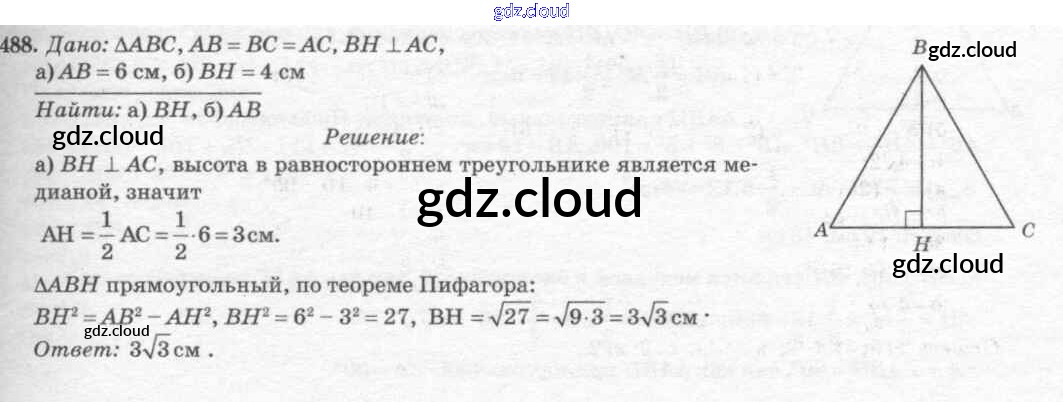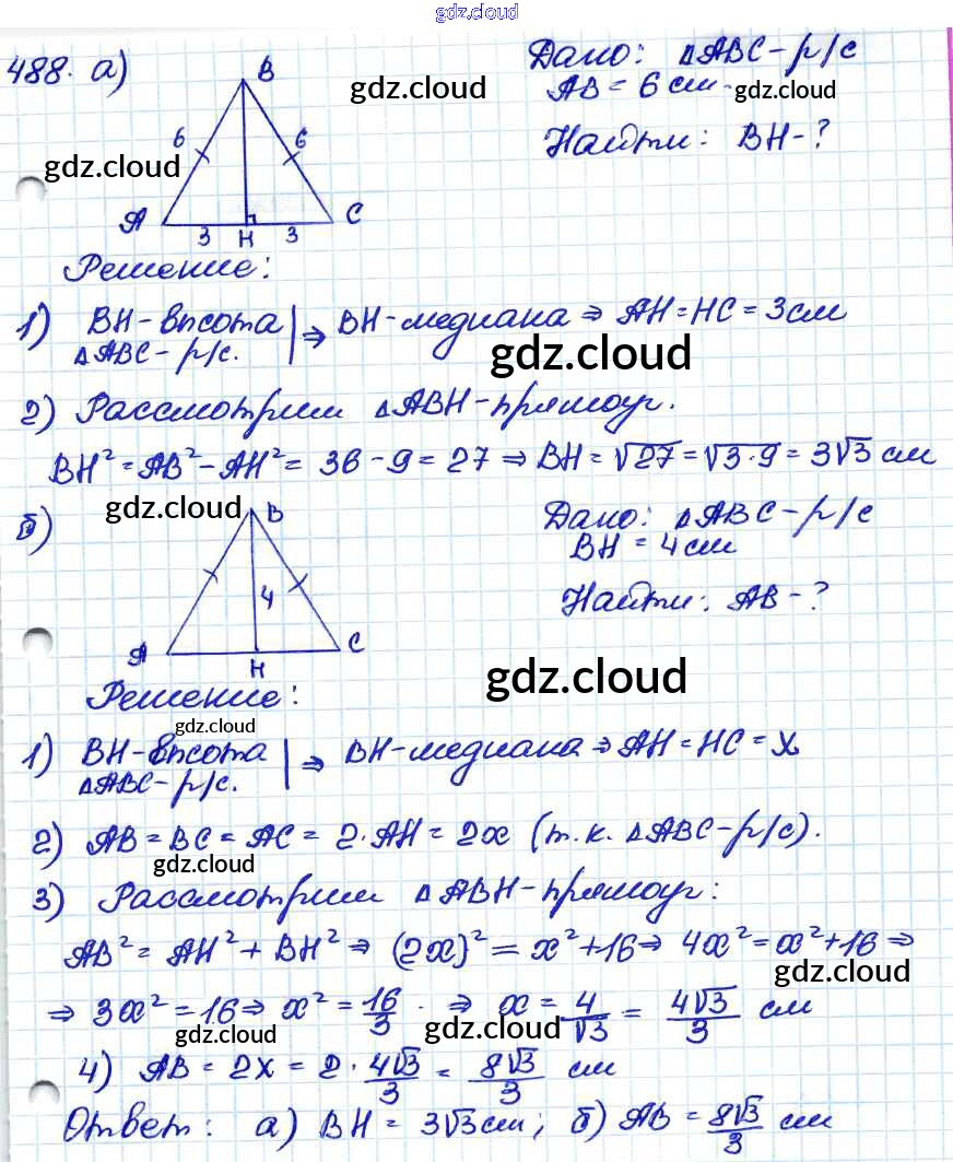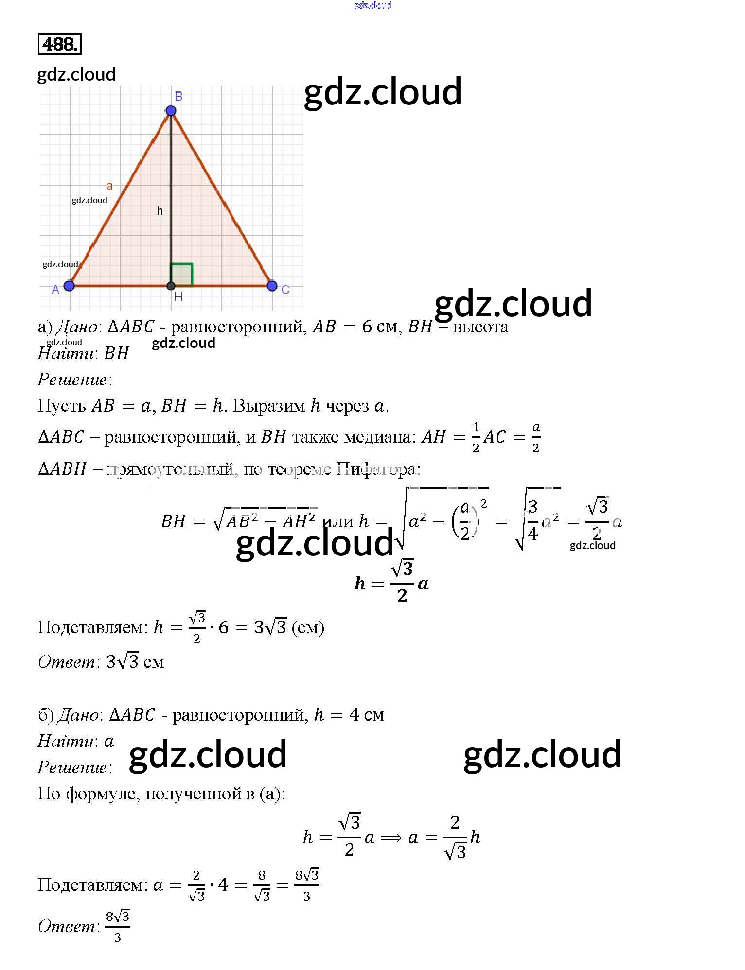Ответ на задание 488 Учебник Геометрия за 7, 8, 9 (седьмой, восьмой, девятый) класс Атанасян, Бутузов, Кадомцев 2010