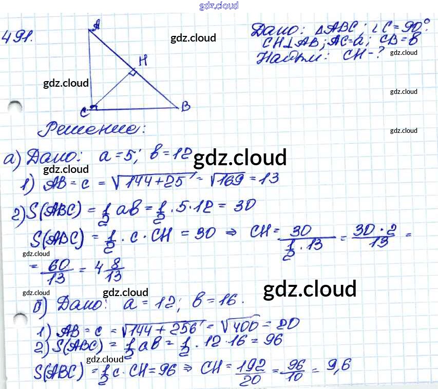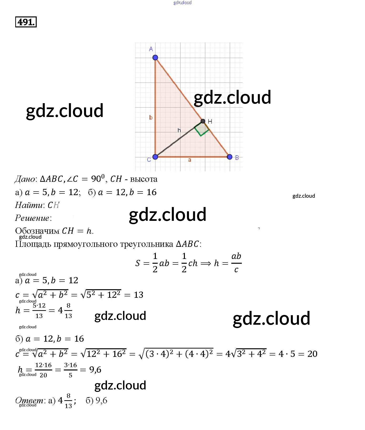 Ответ на задание 491 Учебник Геометрия за 7, 8, 9 (седьмой, восьмой, девятый) класс Атанасян, Бутузов, Кадомцев 2010