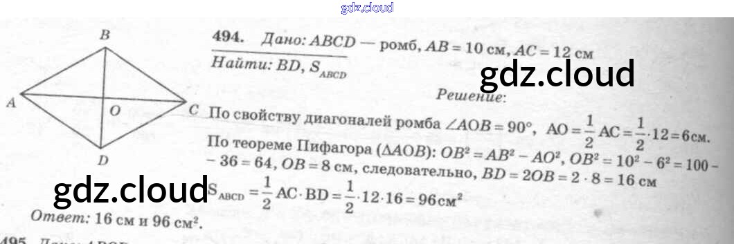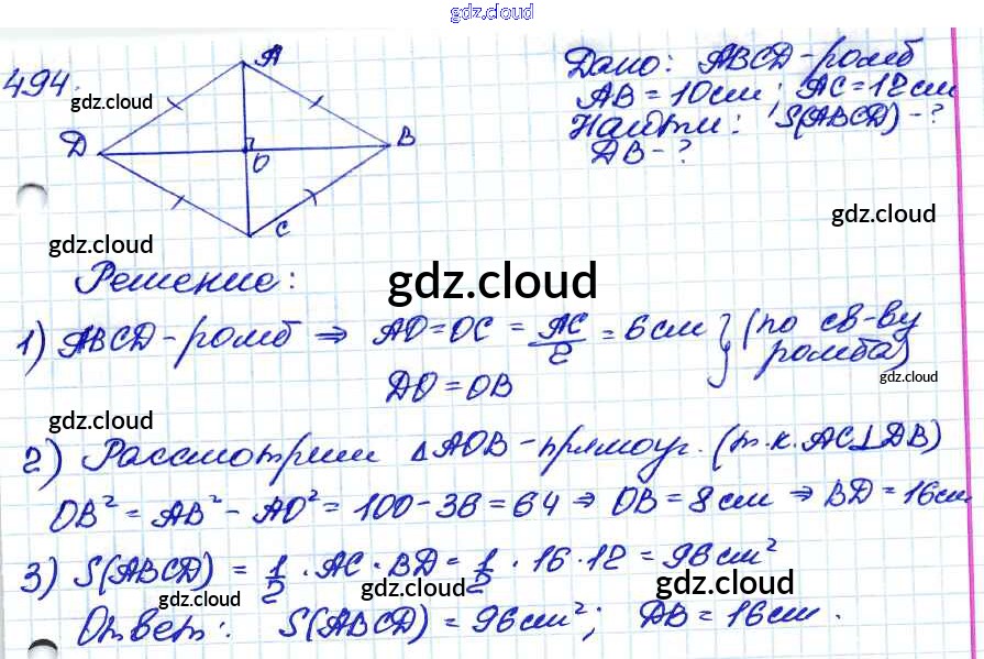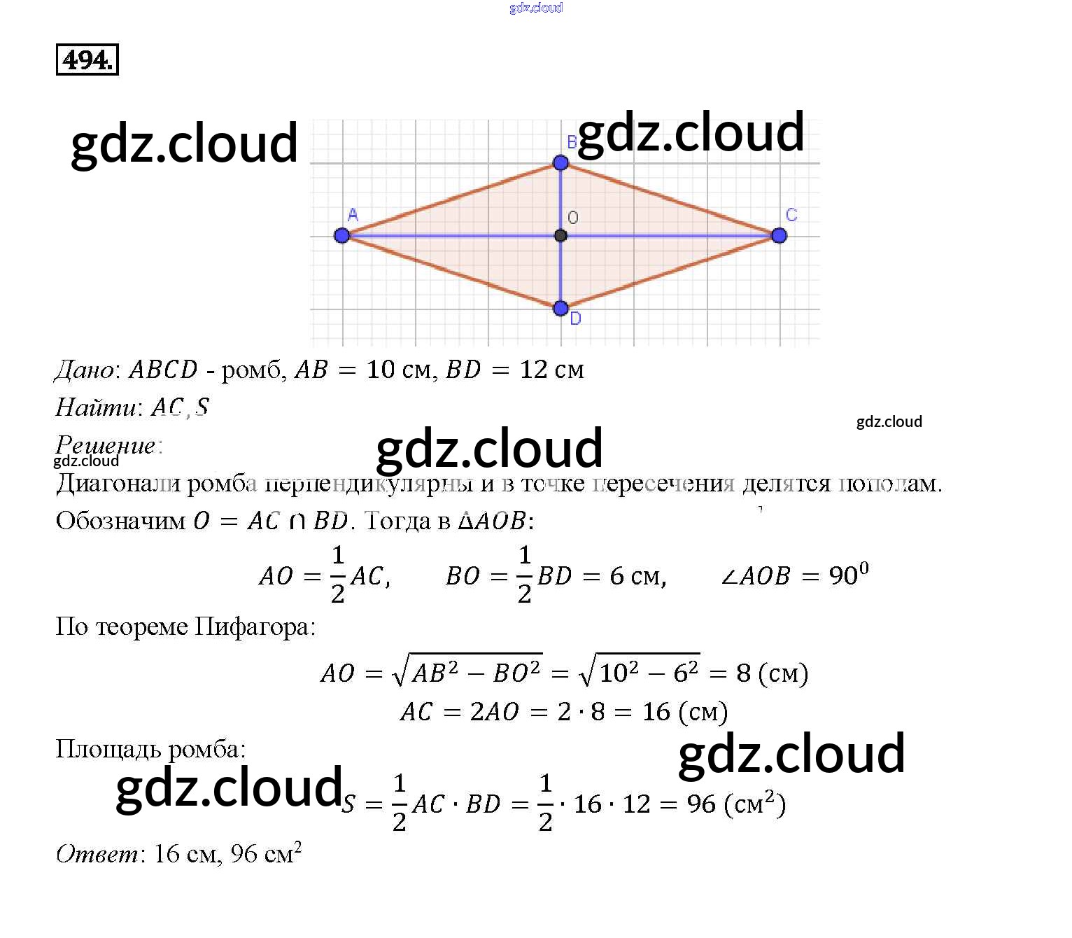 Ответ на задание 494 Учебник Геометрия за 7, 8, 9 (седьмой, восьмой, девятый) класс Атанасян, Бутузов, Кадомцев 2010