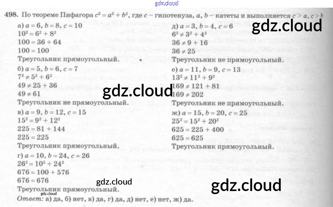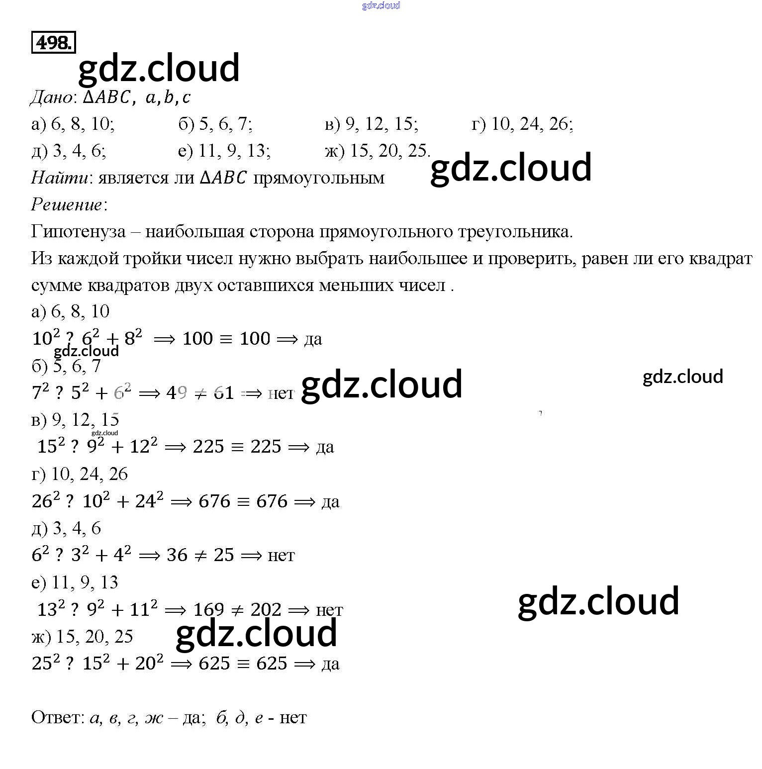 Ответ на задание 498 Учебник Геометрия за 7, 8, 9 (седьмой, восьмой, девятый) класс Атанасян, Бутузов, Кадомцев 2010