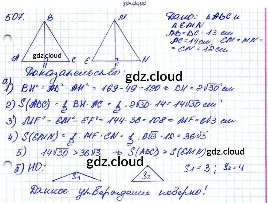 Ответ на задание 507 Учебник Геометрия за 7, 8, 9 (седьмой, восьмой, девятый) класс Атанасян, Бутузов, Кадомцев 2010