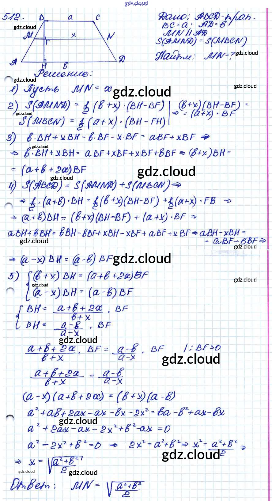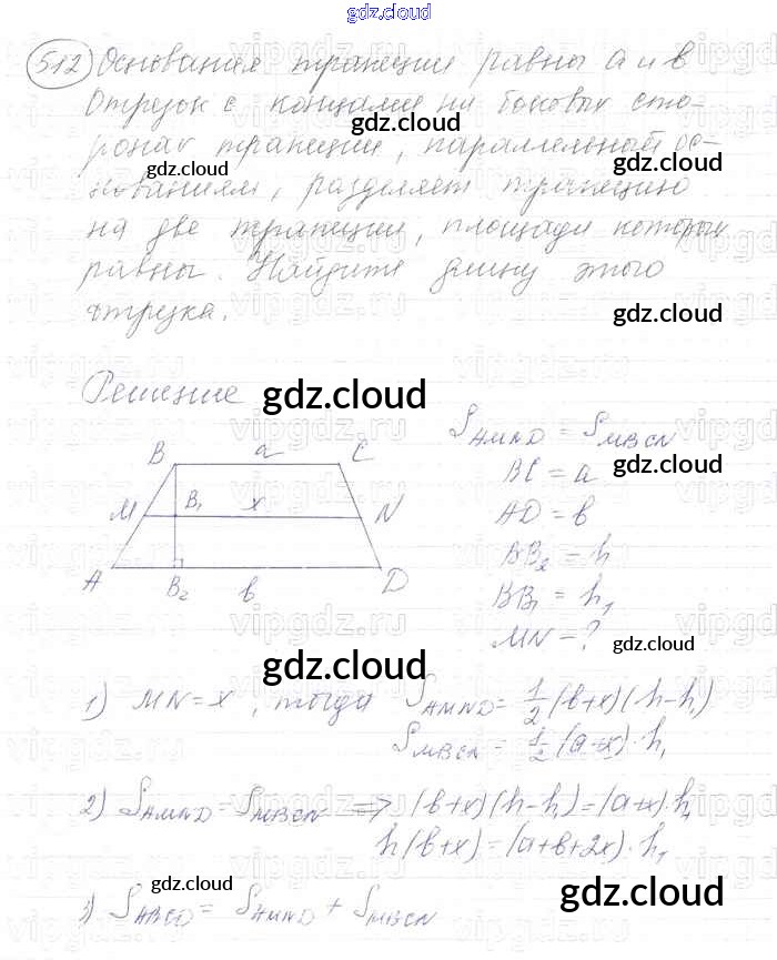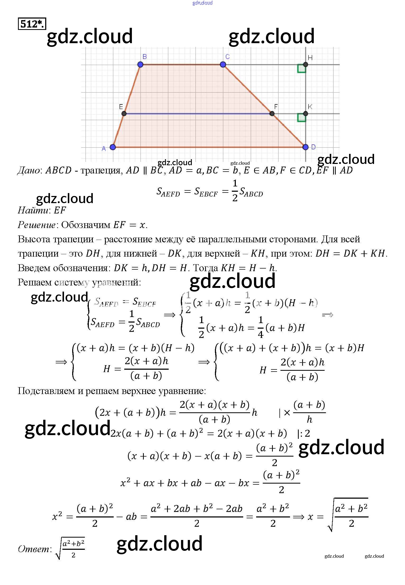 Ответ на задание 512 Учебник Геометрия за 7, 8, 9 (седьмой, восьмой, девятый) класс Атанасян, Бутузов, Кадомцев 2010