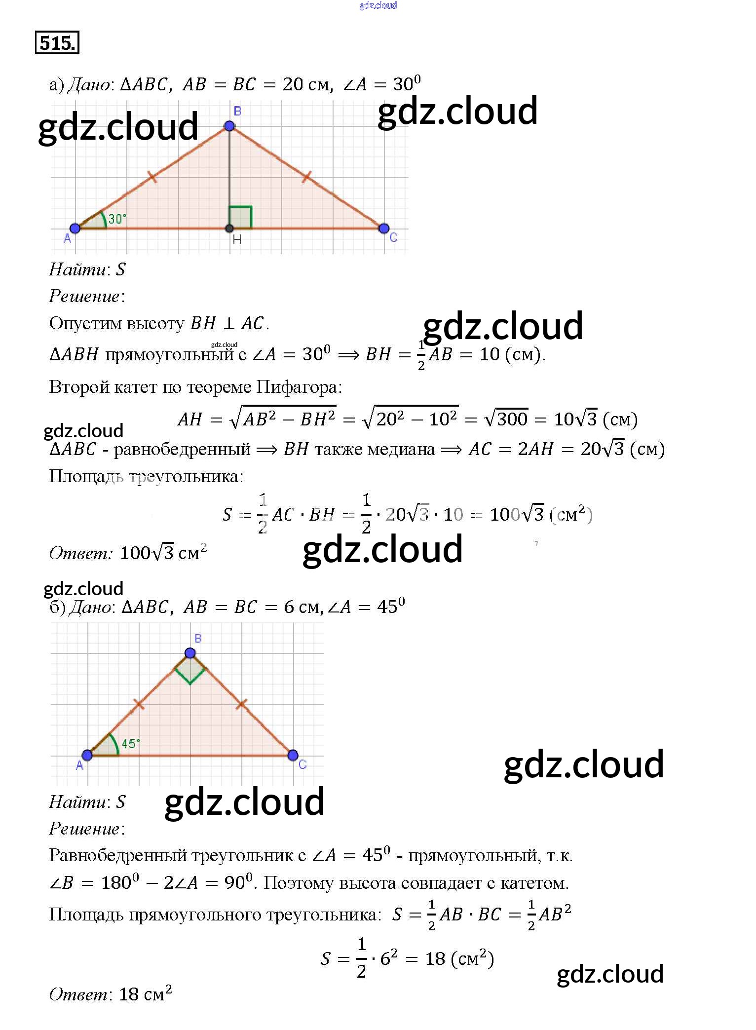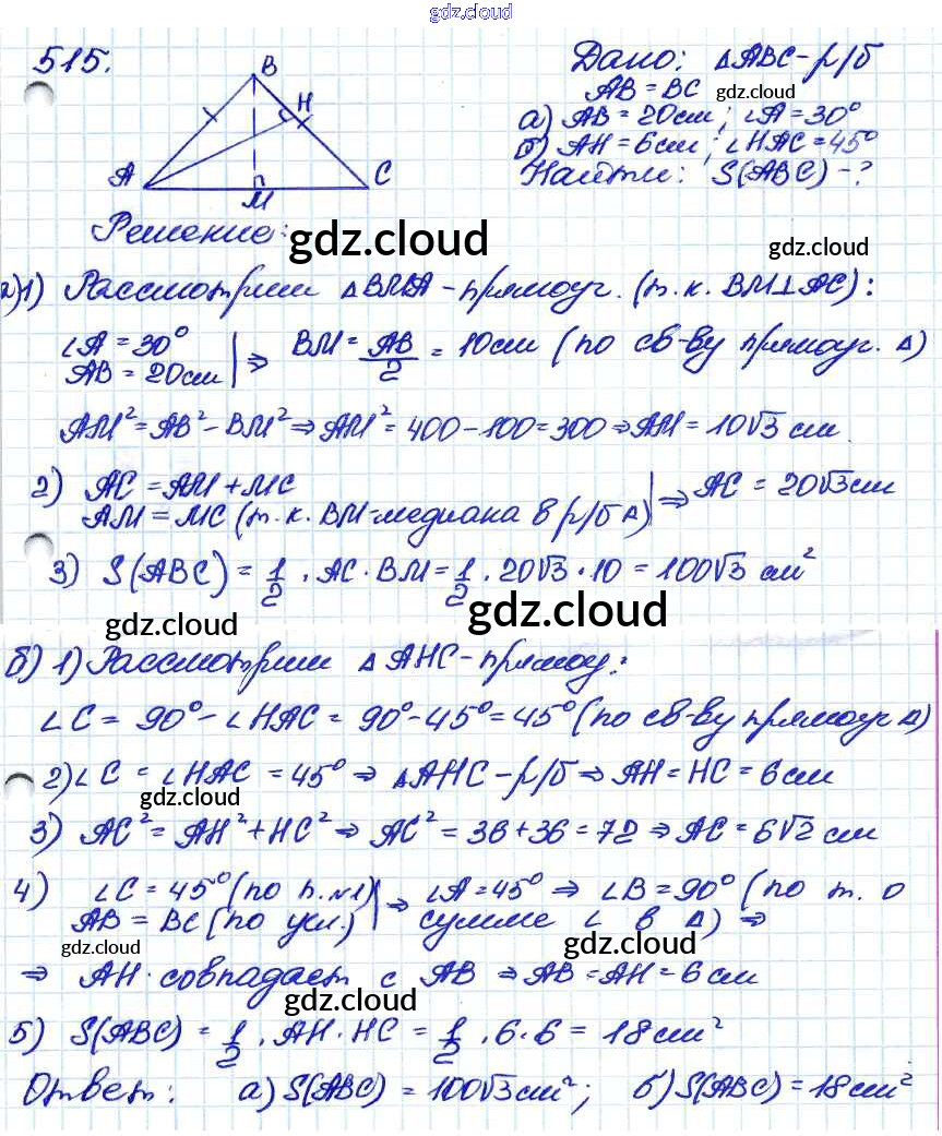 Ответ на задание 515 Учебник Геометрия за 7, 8, 9 (седьмой, восьмой, девятый) класс Атанасян, Бутузов, Кадомцев 2010