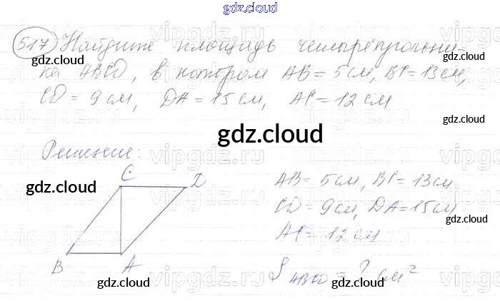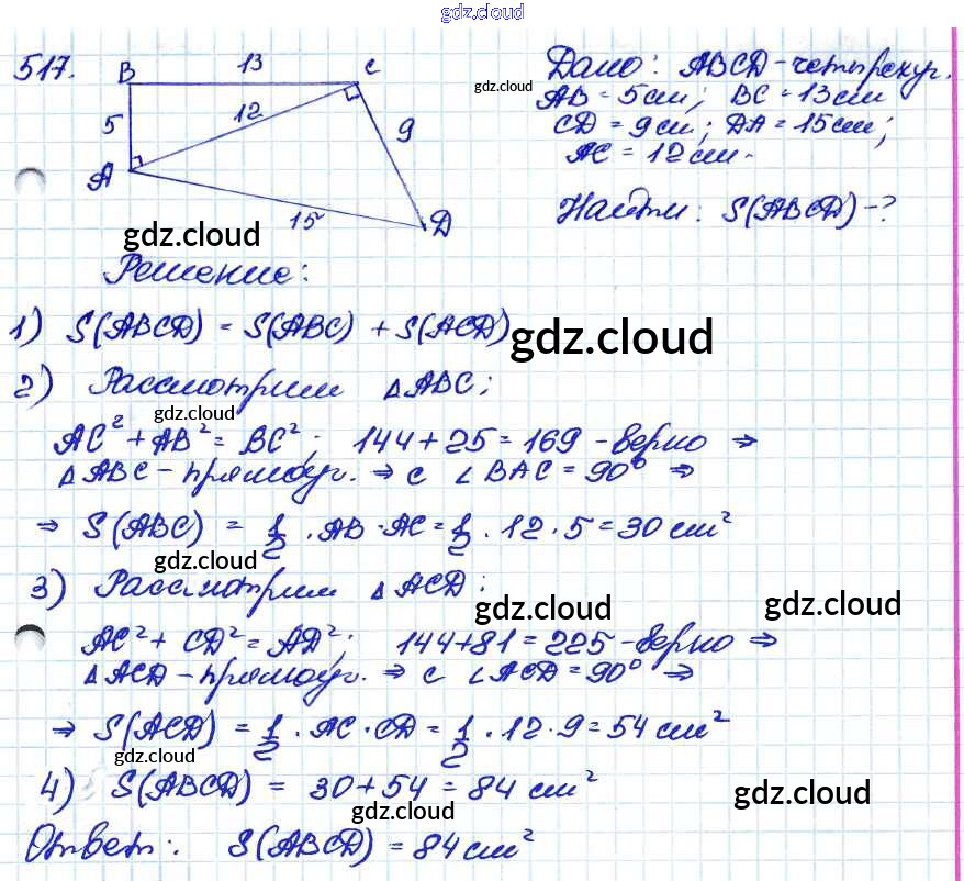 Ответ на задание 517 Учебник Геометрия за 7, 8, 9 (седьмой, восьмой, девятый) класс Атанасян, Бутузов, Кадомцев 2010