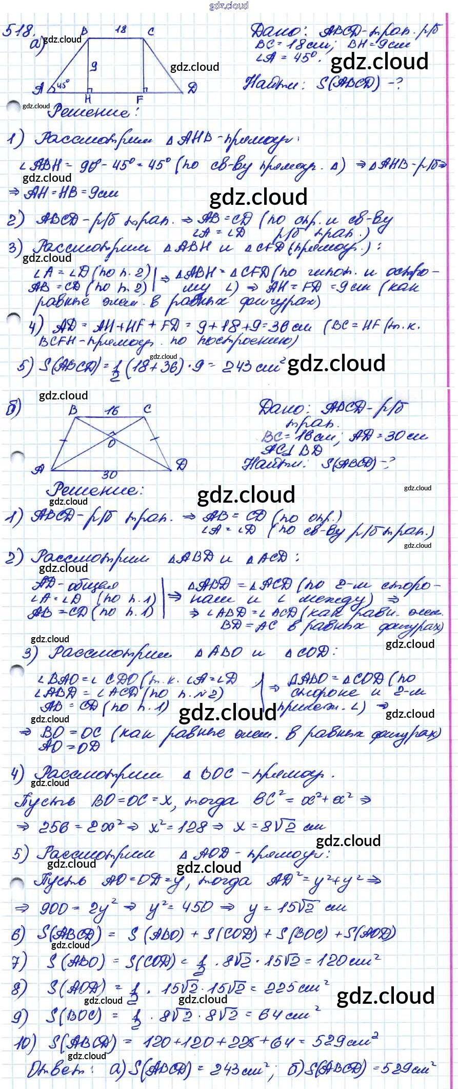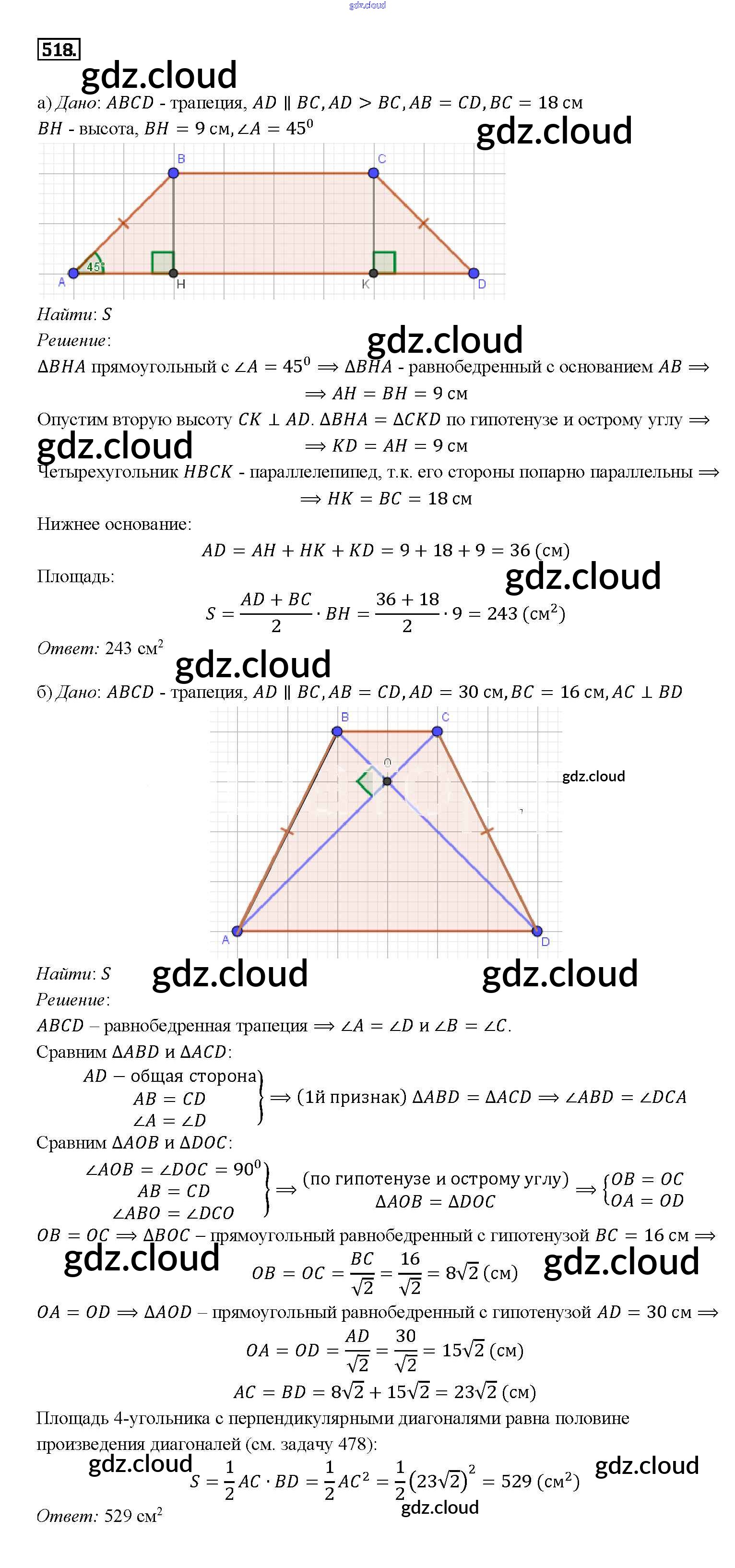 Ответ на задание 518 Учебник Геометрия за 7, 8, 9 (седьмой, восьмой, девятый) класс Атанасян, Бутузов, Кадомцев 2010