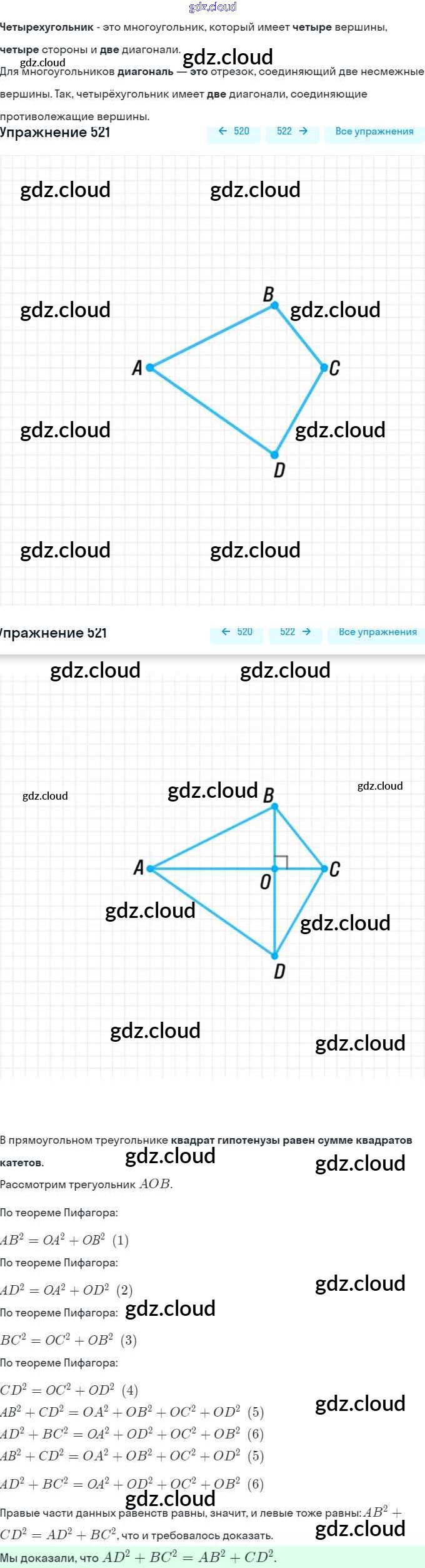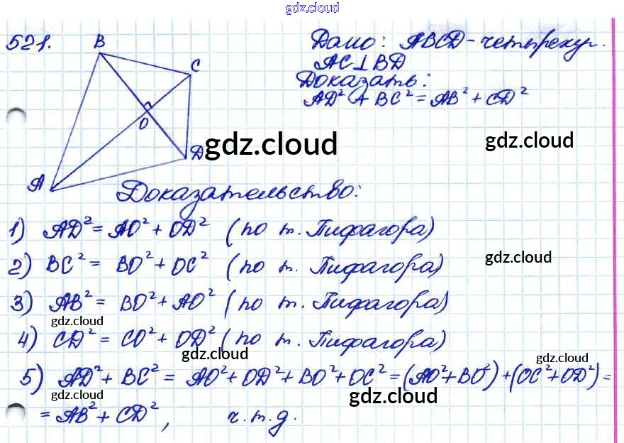 Ответ на задание 521 Учебник Геометрия за 7, 8, 9 (седьмой, восьмой, девятый) класс Атанасян, Бутузов, Кадомцев 2010