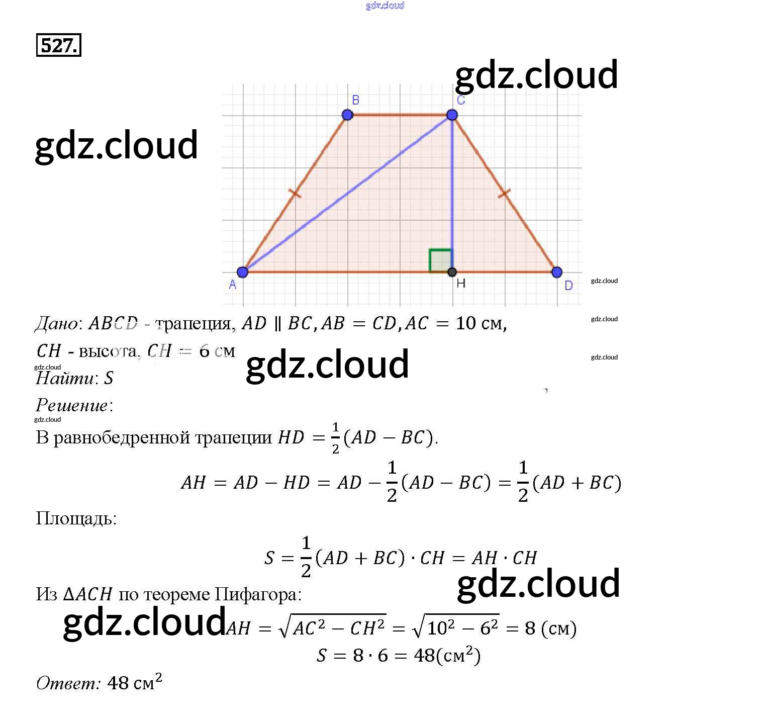 Ответ на задание 527 Учебник Геометрия за 7, 8, 9 (седьмой, восьмой, девятый) класс Атанасян, Бутузов, Кадомцев 2010